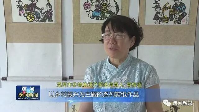 常桂连,今年57岁,是漯河市非物质遗产剪纸传承人。自幼受母亲影响热爱剪纸,后经自己的摸索和创新,创作出了不少弘扬主旋律、反映人民群众幸福生活的剪纸作品。常桂连的老家在漯河市召陵区老窝镇,这些年,她切切实实看到了家乡发生的变化,这激发了她的创作灵感,于是她就用自己的方式,创作出了以乡村振兴、脱贫攻坚为主题的剪纸作品.“产业兴旺”、“生态宜居”、“乡风文明”、“治理有效”、“生活富裕”这就是她眼中的家乡,也是无数个脱贫致富,中国农村的新模样。