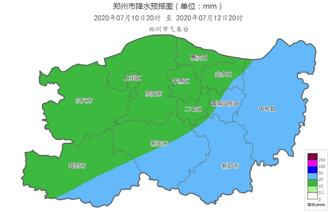 郑州市有一次中到大雨降水过程