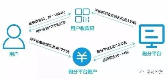 漯河市公安局打击涉诈黑灰产研判专班民警研判发现,此三人采用“跑分”的新骗局。这种 “跑分”方式,听起来似乎收付款就能轻松“日入千元”,但实际上背后蕴含着一系列黑灰产骗局。“跑分”的具体操作手法是,用户A在“跑分”平台上注册并缴纳一定保证金,便可参与“跑分”赚佣金。以网络赌博为例,当赌客充值时,赌博网站向“跑分”平台发起代收款请求,用户A抢单成功后,提供其个人收款二维码接受赌客付款。同时,平台扣除用户A的保障金,划转给赌博网站。当用户A收到一笔款项时,对应缴纳的保障金就会减少,由此完成一进一出的“跑分”行为,同时用户A会得到一定比例的佣金。