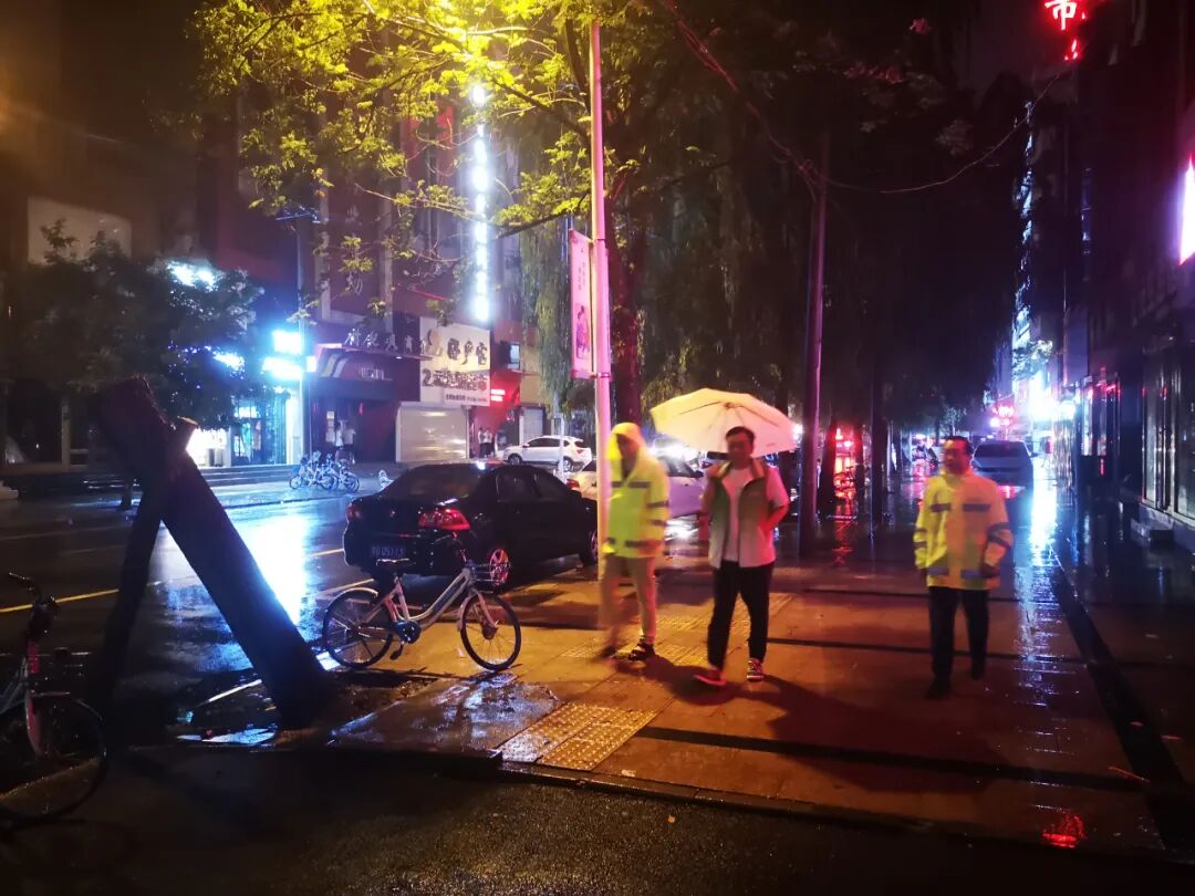 21日晚上8时许,中心领导班子带队,各防汛应急抢险小组分工、分片对市区主次干道、游园等容易内涝和易积水区域昼夜不停巡查,对威胁到人、房屋、道路、电缆等安全的倒伏树木进行及时处理,保障道路通行安全。