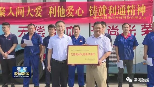 漯河利通液压科技股份有限公司始终坚持经济效益和社会效益并重,积极参与社会公益事业,切实履行企业社会责任,连续多年在冬夏采血“淡季”组织无偿献血活动,用无偿献血的实际行动践行新时代文明精神,传播社会正能量。