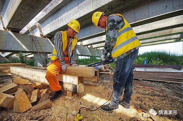 架设中的澧河大桥下工人们正在紧张施工