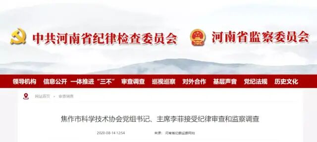 焦作市科学技术协会党组书记、主席李菲接受纪律审查和监察调查