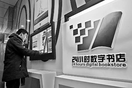 顾客在24小时数字书店阅读多媒体图书。