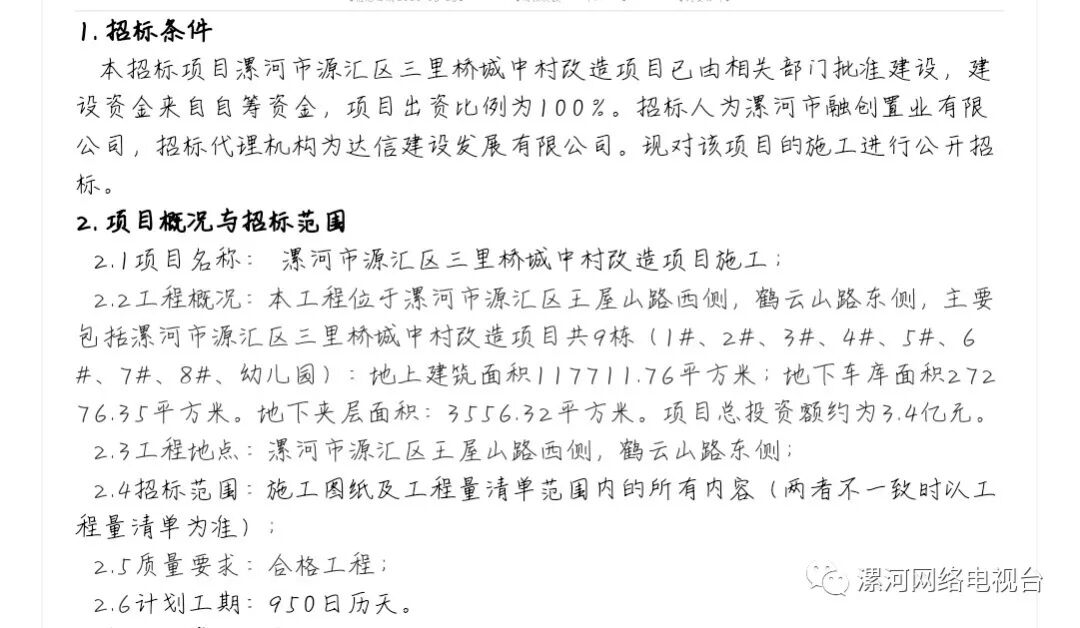 项目总投资3.4亿元,漯河这个城中村改造项目进行监理招标。