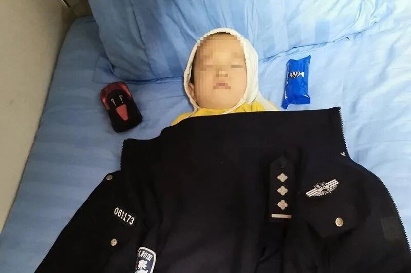天刚刚下过雨,气温较低,孩子穿着单薄,为了不让孩子冻着,民警在向市局指挥中心反馈过情况后,用警服把孩子包裹起来,带回到了单位宿舍。孩子不知不觉在民警张威怀里睡着了,张威小心地把孩子放到床上,又专门在床边加放了一张折叠床,防止孩子掉床。考虑到孩子家人应该也在着急寻找孩子下落,民警连夜通过求助媒体,发朋友圈等方式,想尽一切办法积极寻找孩子家人。