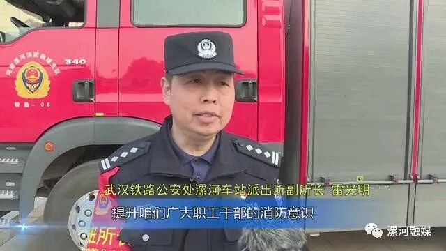 “119”消防日,为了切实提高辖区内部单位消防安全意识和应对火灾事故应急 能力,当天下午,武汉铁路公安处漯河车站派出所联合漯河火车站、漯河市消防救援支队源汇区消防大队开展消防演练。