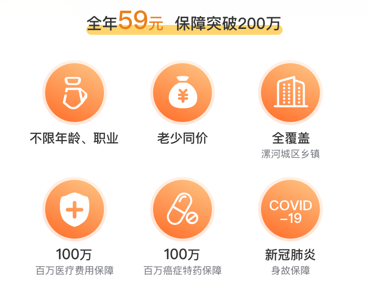 即日起,漯河市全体基本医保参保人,不限年龄,不限职业,均可仅花59元,享受最高超过200万元的保障。