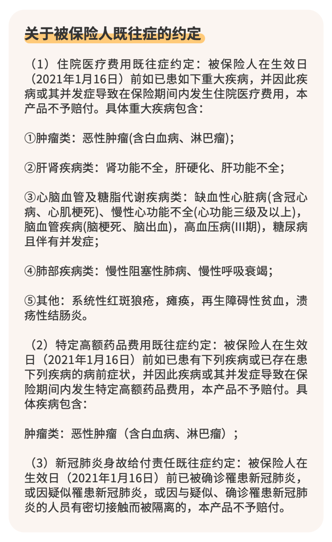 参保时,需要认真阅读关于重大疾病既往症的告知: