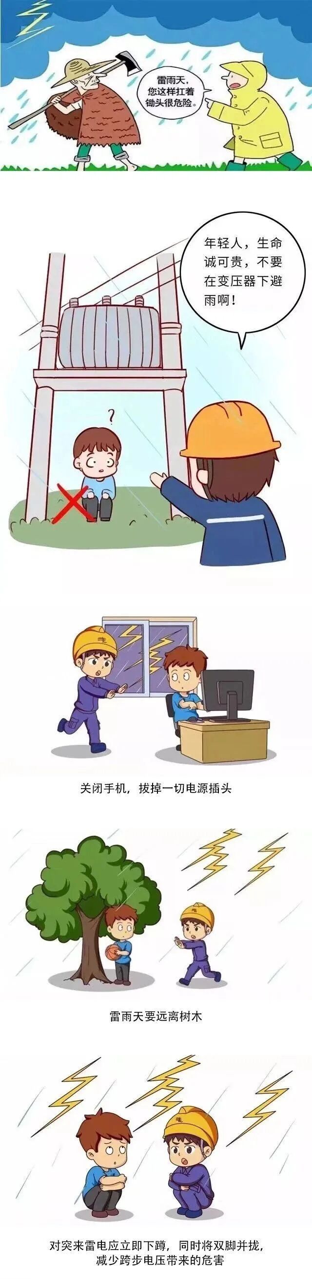 3.切断危险电源,不要在树下、电杆下、塔吊下避雨。