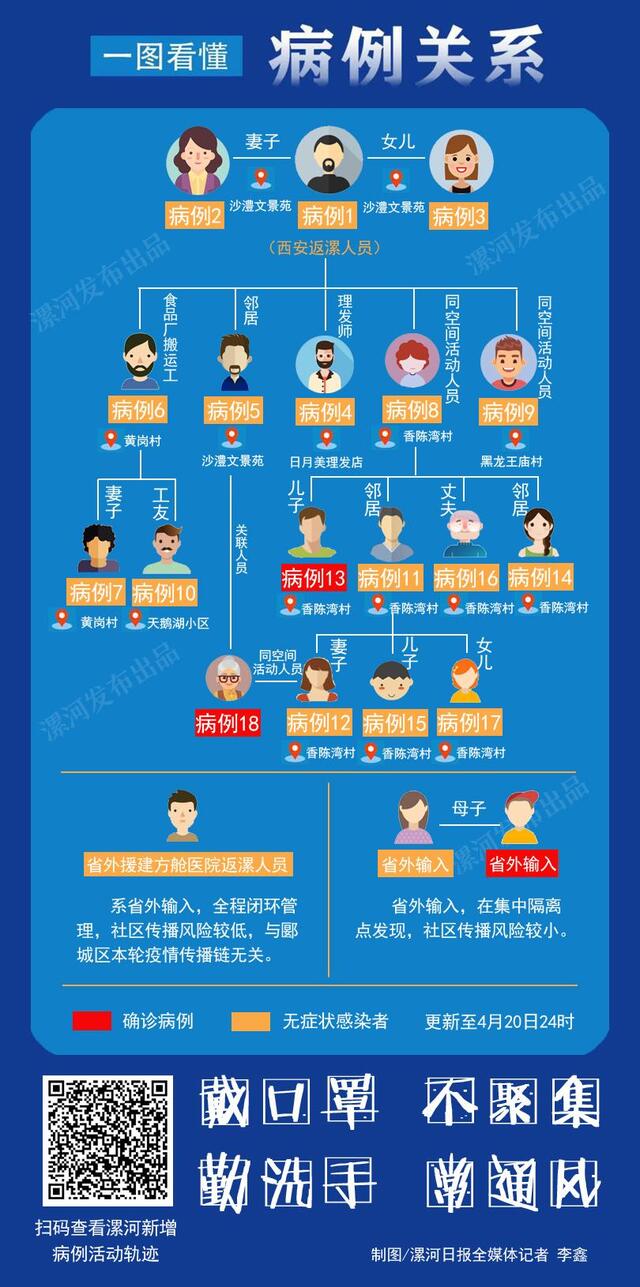 病例18:系病例5的关联人员,病例12的同空间活动人员。近14天内未出漯。