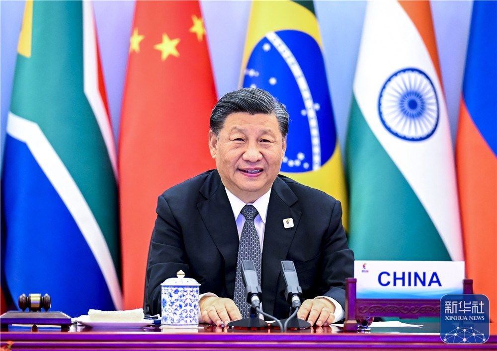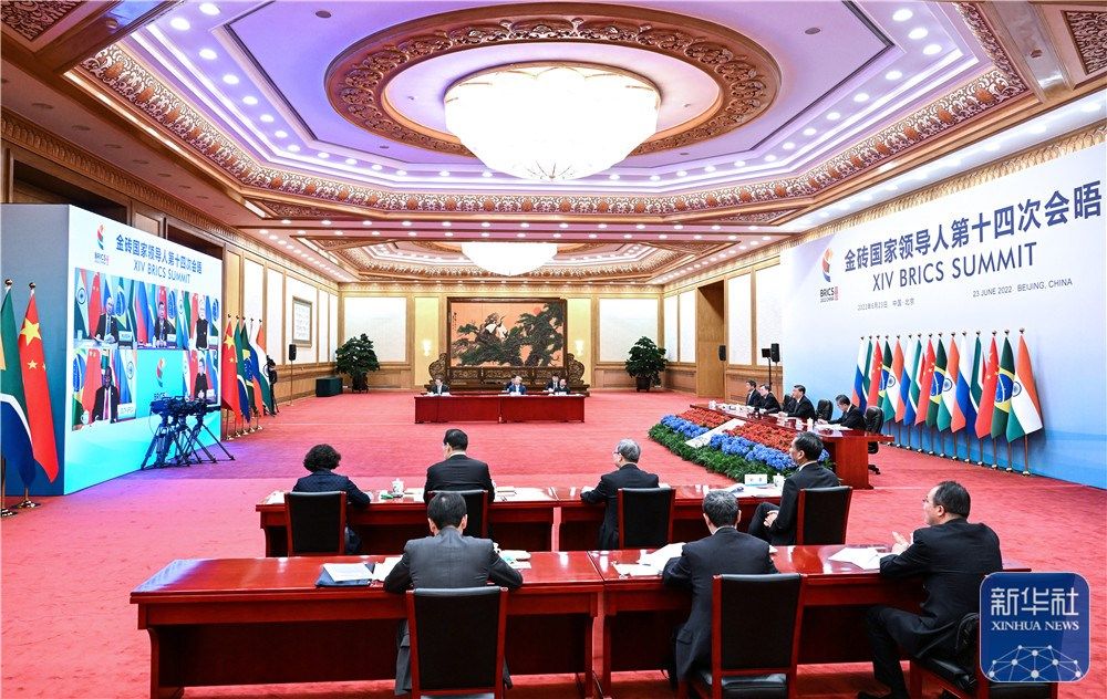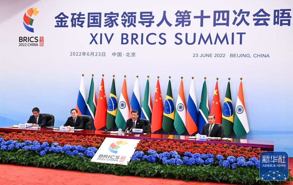 6月23日晚,国家主席习近平在北京以视频方式主持金砖国家领导人第十四次会晤并发表题为《构建高质量伙伴关系 开启金砖合作新征程》的重要讲话。新华社记者 李学仁 摄
