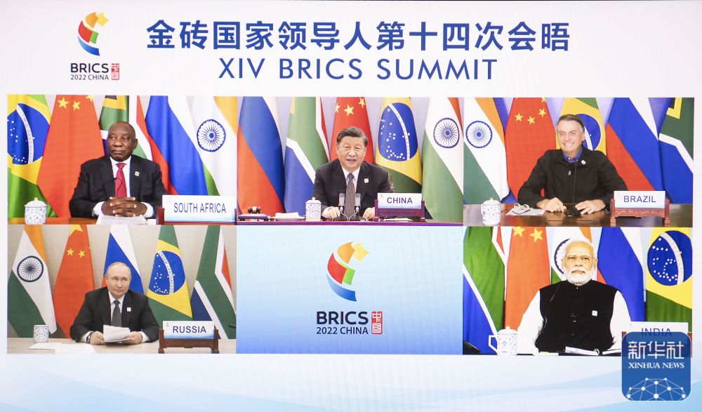 新华社北京6月23日电(记者杨依军)国家主席习近平23日晚在北京以视频方式主持金砖国家领导人第十四次会晤。南非总统拉马福萨、巴西总统博索纳罗、俄罗斯总统普京、印度总理莫迪出席。