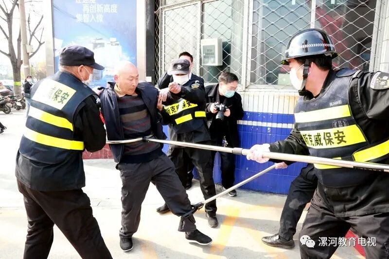 制伏强闯学校的不明人员