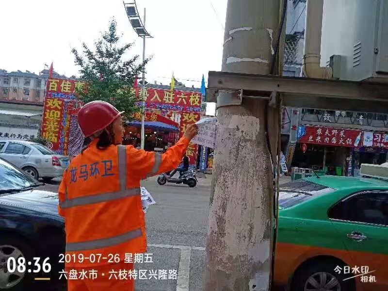 今天早上,环卫工人在工作中发现城区多处墙壁、电线杆上、路灯配电箱等处张贴售房广告,并向特区城市综合执法局报告。特区城市综合执法局立即发动人员进行清理,依法没收广告1000余张,并安排执法人员进行调查取证。