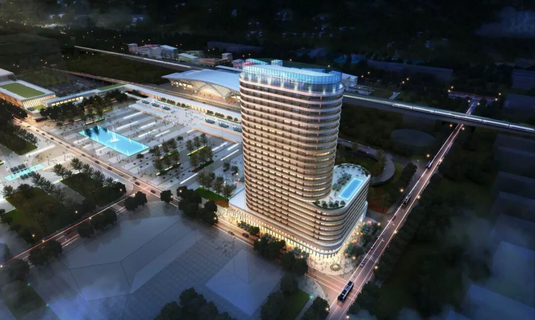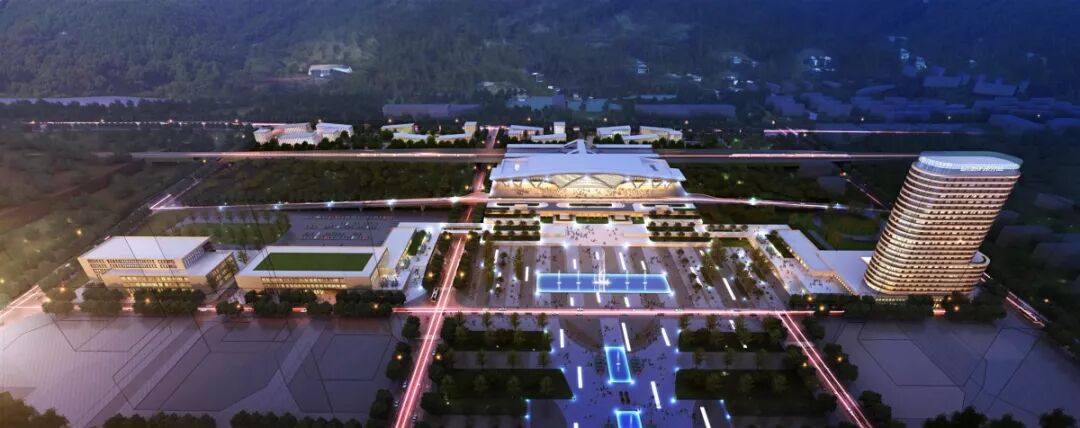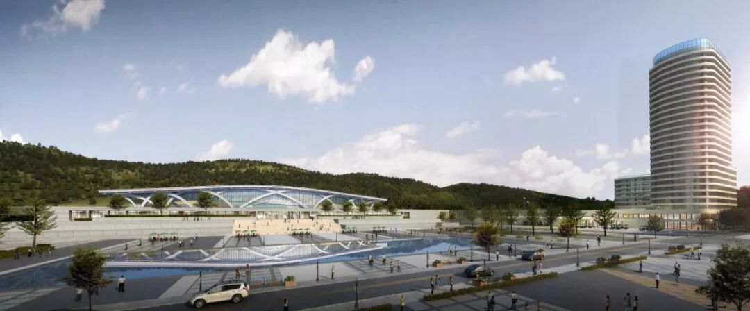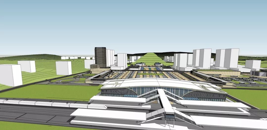 交通枢纽用地中部为整合了旅客集散及商业配套服务与一体的站前广场。