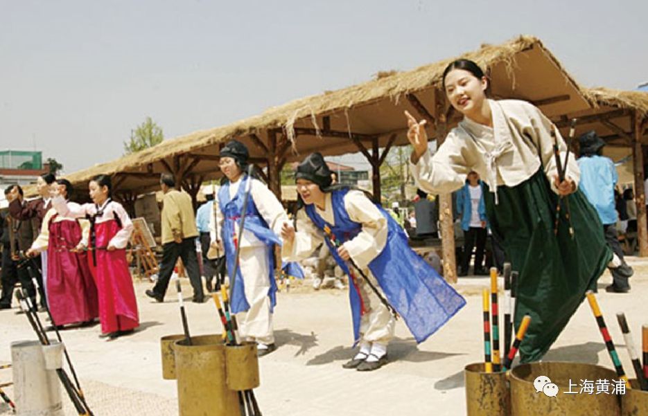 游戏规则:每组成员全员参加投壶,每人可投5支箭,每组只要有一人将5支箭全部投中,即可过关。