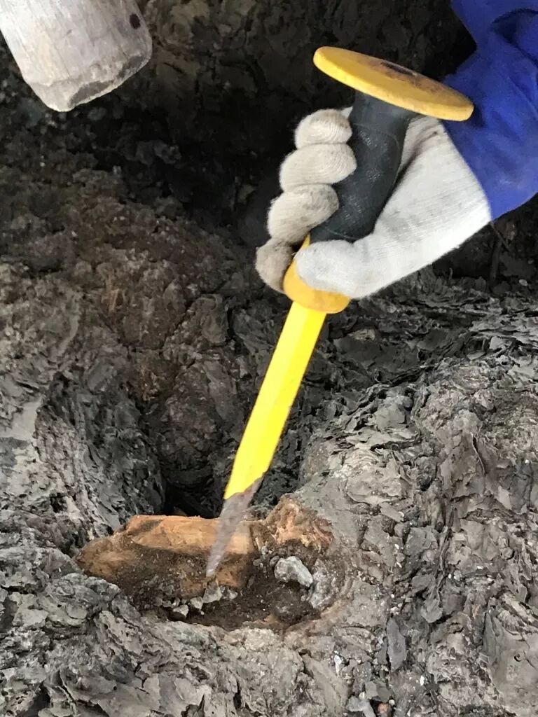 两株古树高度都超过了20米,园艺团队首先要上架对古树进行一次全身检查,类似于人类做“CT”,检查病虫害、检查每一个枝条、树洞和伤口,将所有枯枝烂头、腐烂的树洞、老化的补洞材料、真菌感染、鸟窝等方位标记,再携带工具上树细心地一一处理,不遗漏任何一个角落。