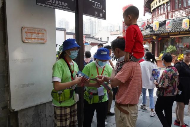 而在千百道风景中,特别引人注目的是分布在豫园景区内外的一个个志愿者。身着绿色志愿者服装,“小青菜”们或是驻守在景区中的志愿岗亭、或是行走在各自负责的路口区块,以“微笑志愿,温度豫园”为口号,他们用心守护着节假日期间景区的有序运转,悉心留意着每一个需要帮助的游客朋友。