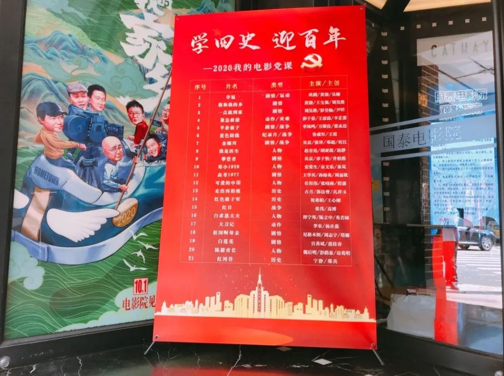 为积极开展“学四史 迎百年——2020我的电影党课”主题活动,国泰电影院充分发挥红色阵地优势,于10月正式启动红色电影展播活动。此次电影党课影片精心挑选《夺冠》、《我和我的家乡》、《一点就到家》等多部优秀的国产主旋律影片,积极营造“学四史,迎百年”主题电影党课氛围,为黄浦区各企事业单位开展主题党日活动提供平台,通过授课、观影、交流等形式,打造可持续运作的红色文化新载体。