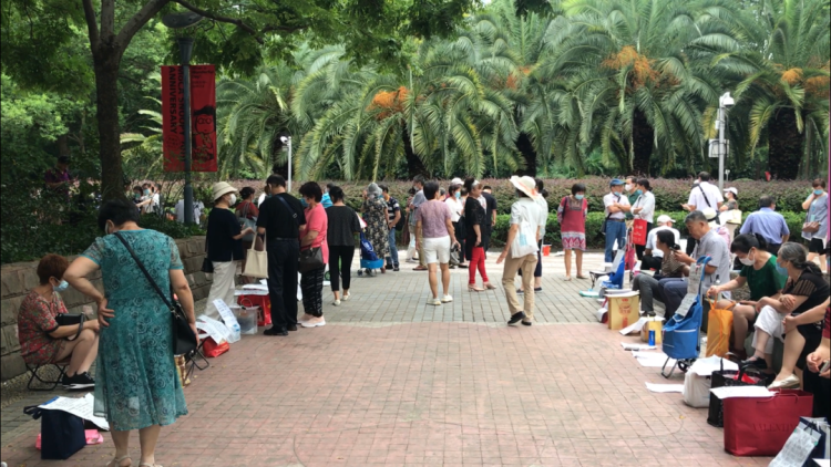 在老杨的回忆里,英语角最多的时候有三四百人。“(但是)最多辰光也没现在相亲角人噶许多。”他笑笑说。
