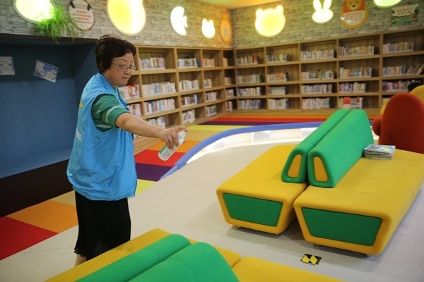 图书馆儿童阅览室,专供小读者使用,布置得好像儿童乐园。书架靠着四周,房间中央的桌凳也不是方方正正排排坐,一切都很随意很放松,孩子们取了要读的书,想坐凳子就坐凳子,想席地就席地。原本,睢洋只是在为三五个孩子朗读,读着读着,其他孩子也围拢上来,一听就是30分钟。