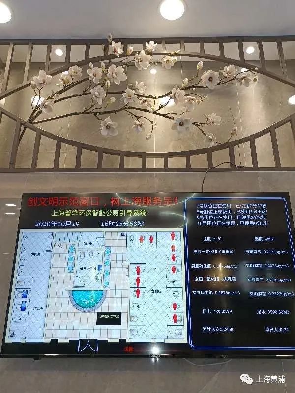 刚经过“智慧化”改造的还有重庆南路202号公厕。由于靠近热闹的复兴公园,人流量也特别大。“特别是早晚和双休日,女厕排队现象经常有。”公厕保洁员告诉记者,而经过此次“智慧化”改造后,一套人流量感应器正式上线,“有几只空位,市民游客只要在公厕外往大屏幕瞄几眼,就一目了然。”此外,记者了解到,该公厕还安装了温湿度传感器、烟雾传感器、坑位占用LED指示牌等,让市民游客用厕更方便、舒心。