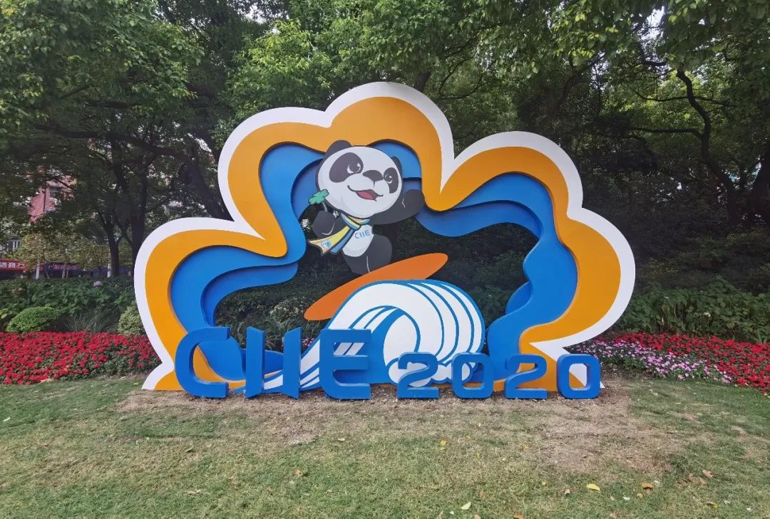 微笑的进宝是上海整座城市好客的象征。绿地内花卉簇拥着进宝,百花齐放,节日氛围浓厚。
