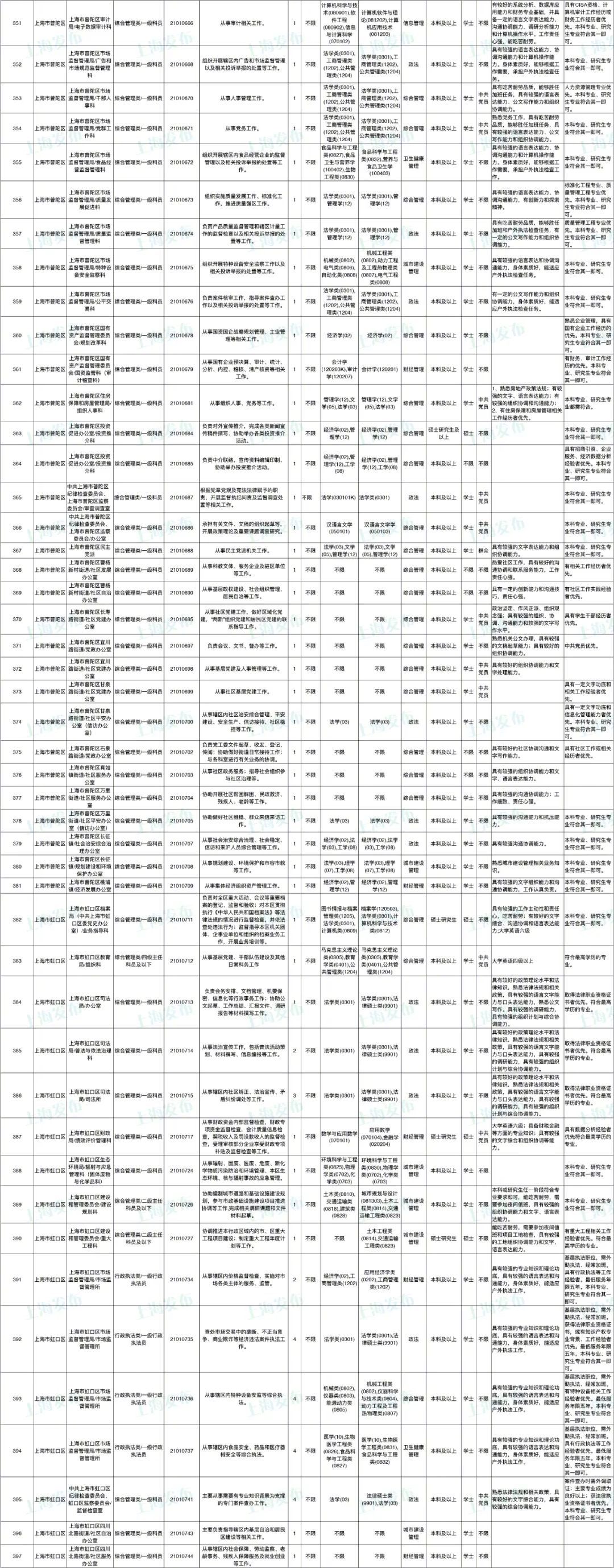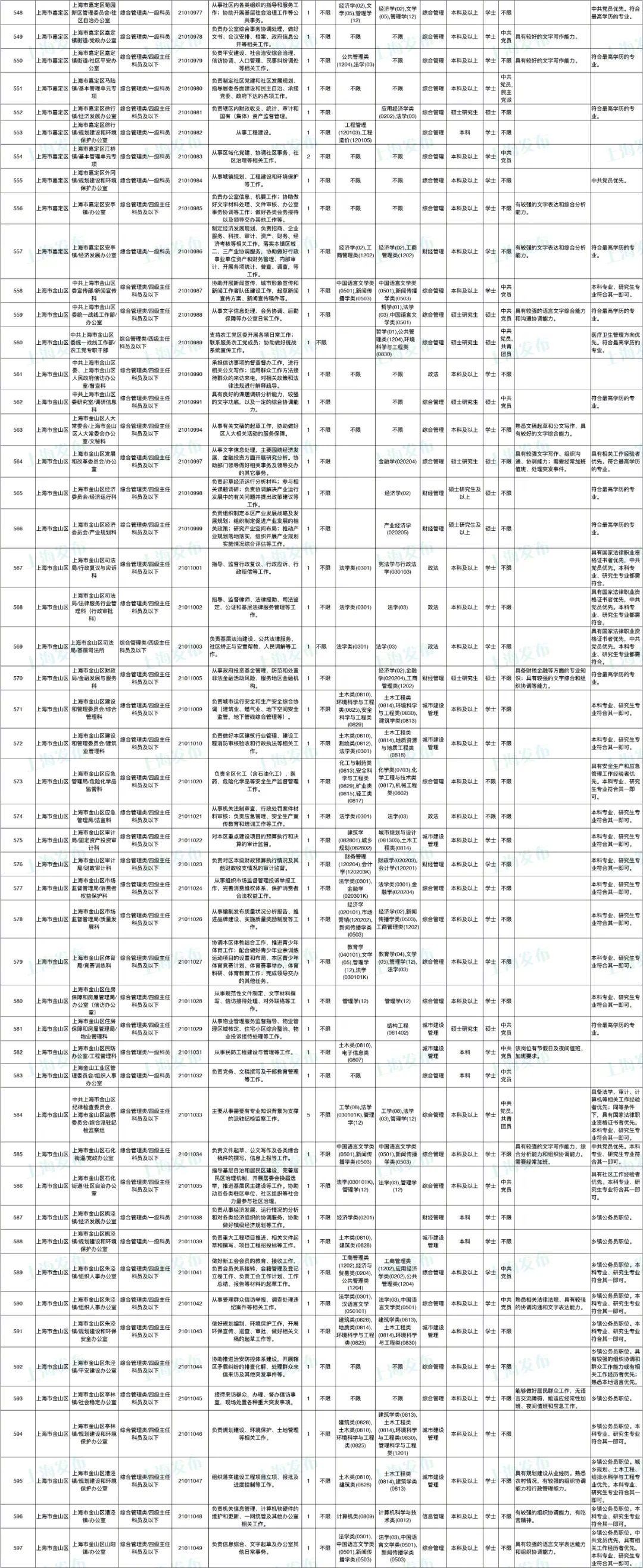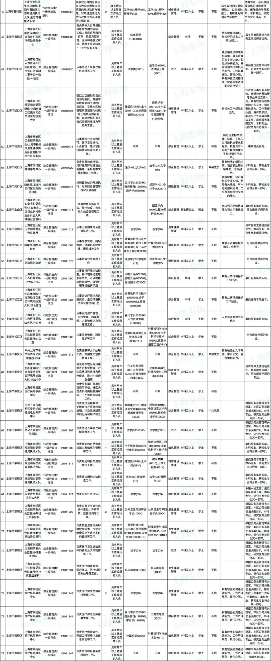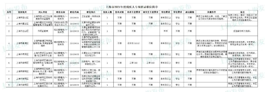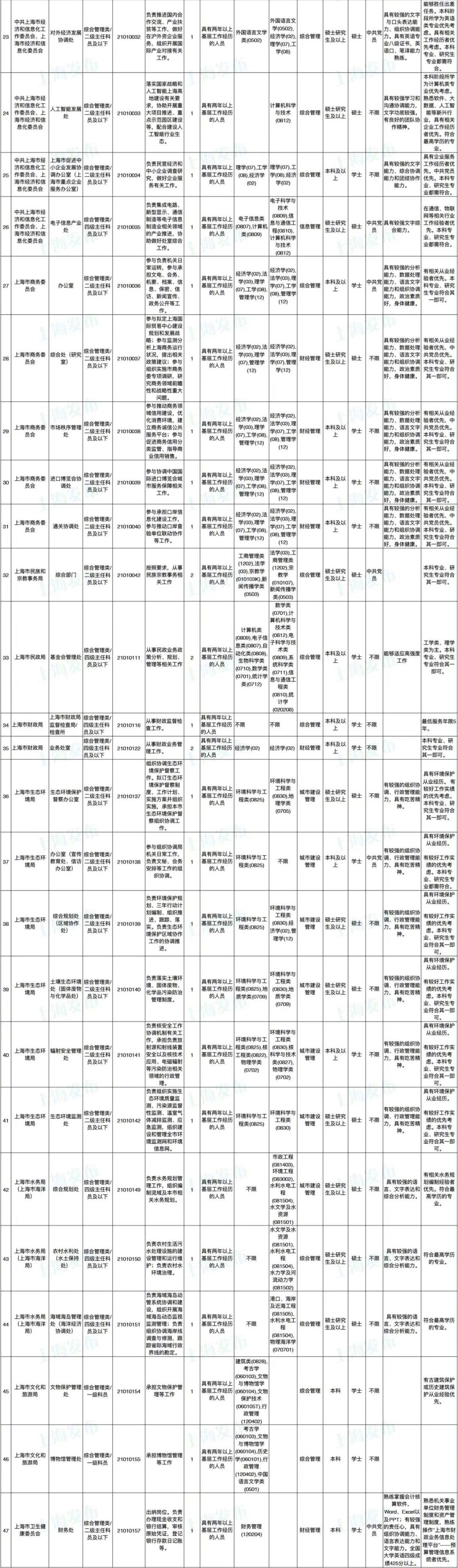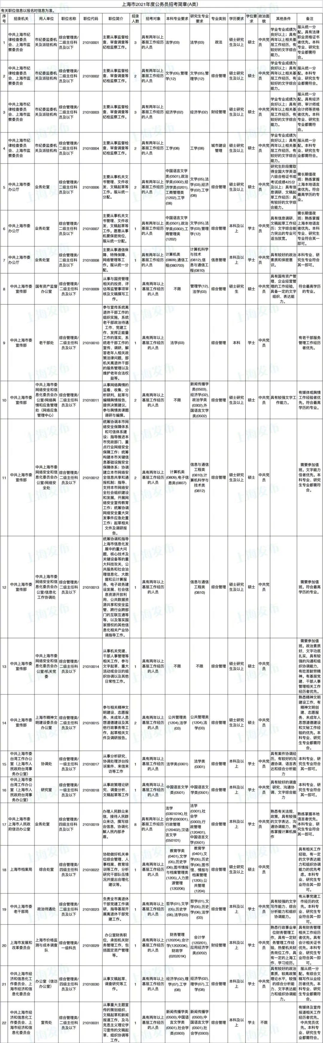 2021年上海市公务员招考职位表最新发布!这次全市有1468个岗位,招2896人。快来看看有没有合适你的职位!招录职位信息摘要请见下文,完整招录要求请点击“我要下载”下载表格查看。