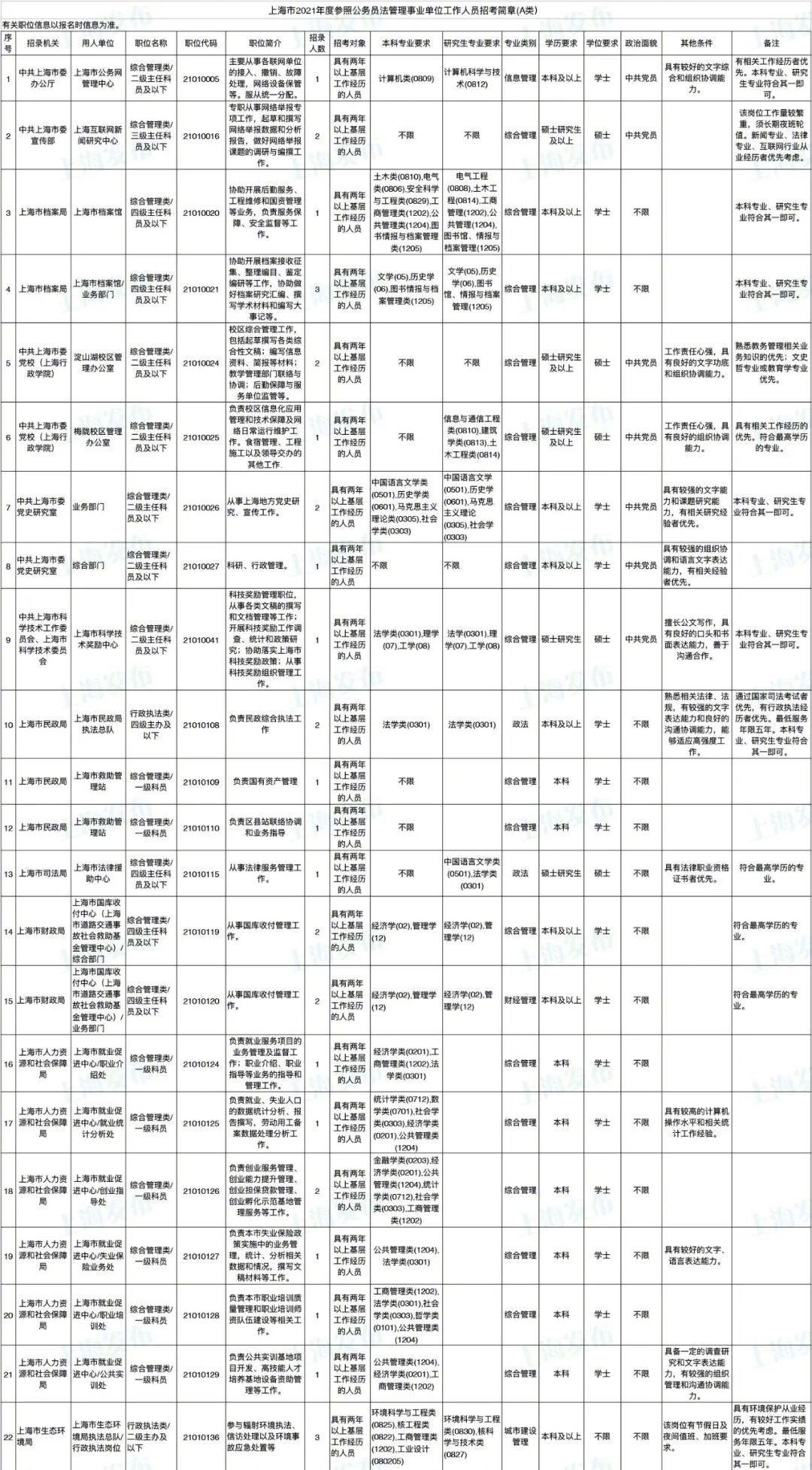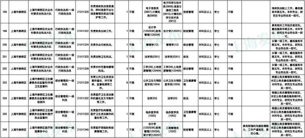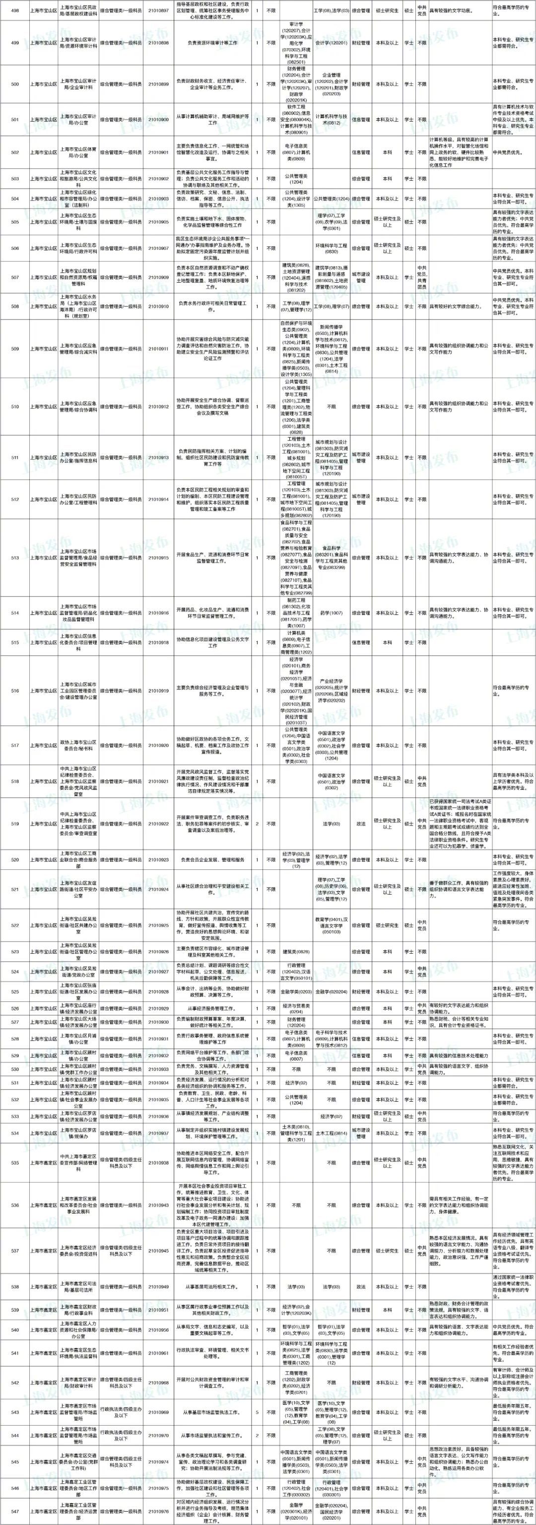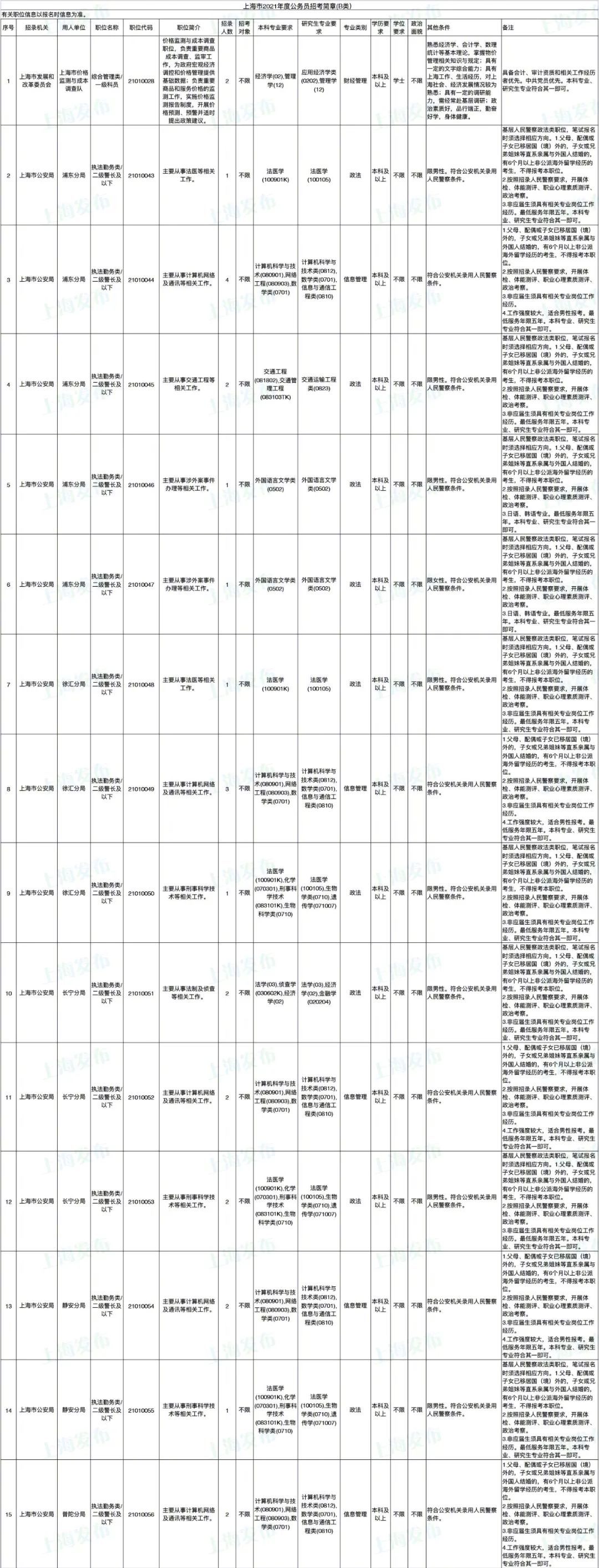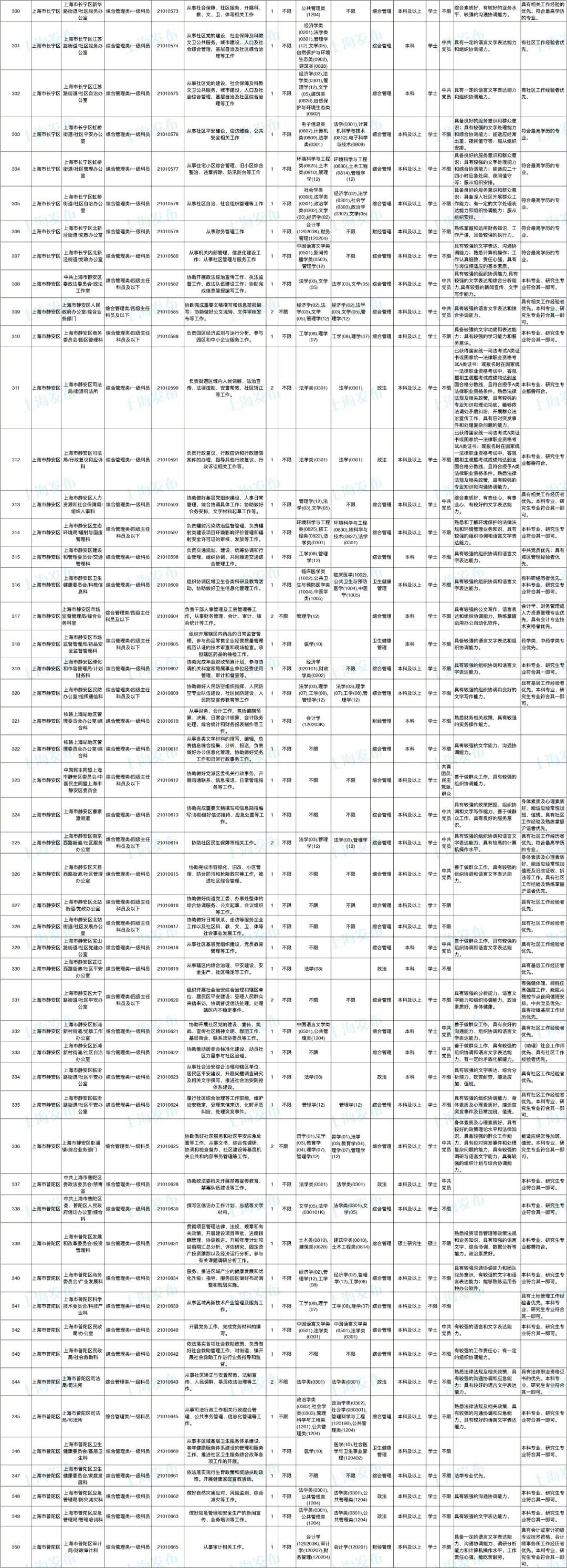 2021年上海市公务员招考职位表最新发布!这次全市有1468个岗位,招2896人。快来看看有没有合适你的职位!招录职位信息摘要请见下文,完整招录要求请点击“我要下载”下载表格查看。
