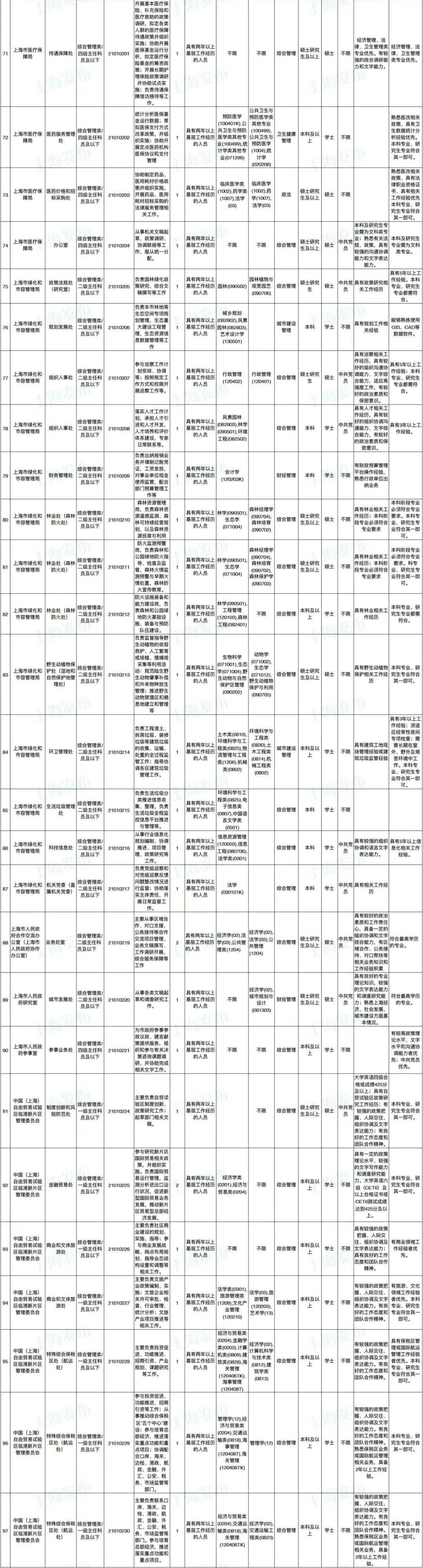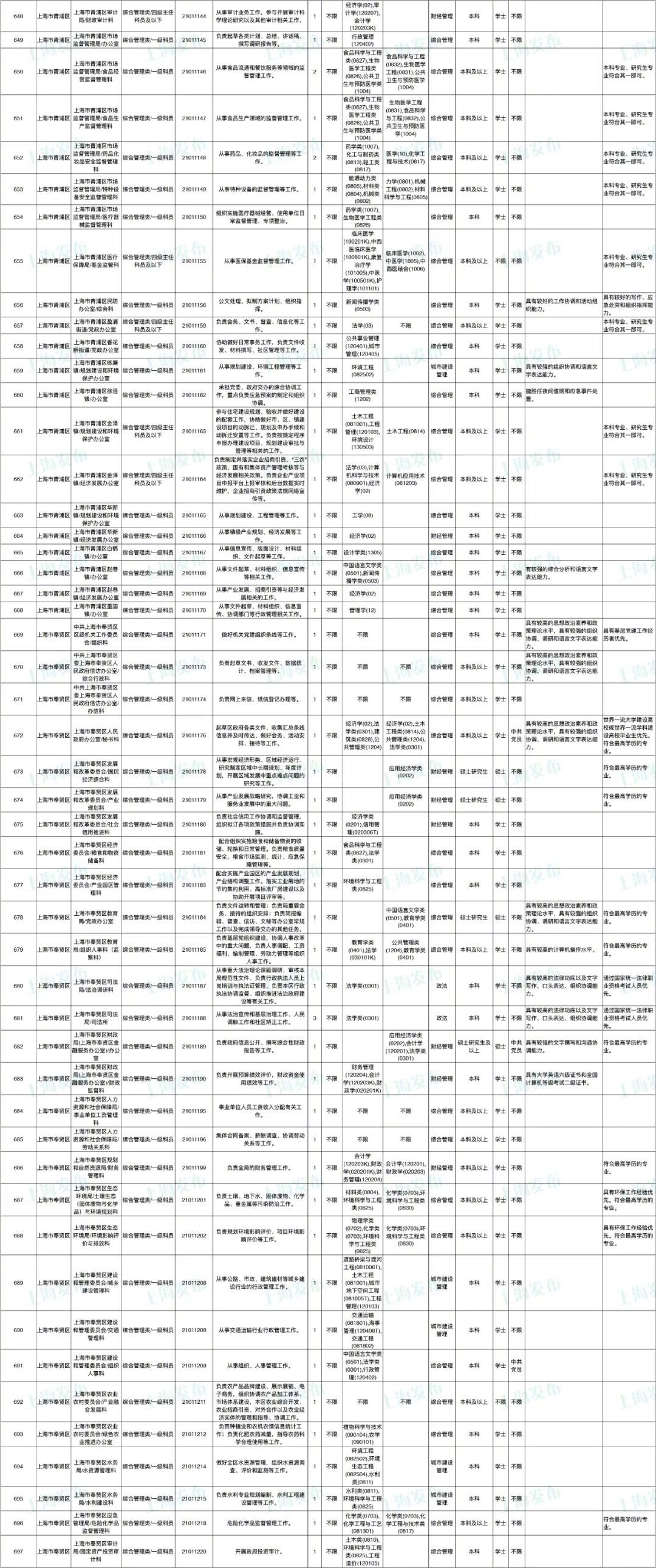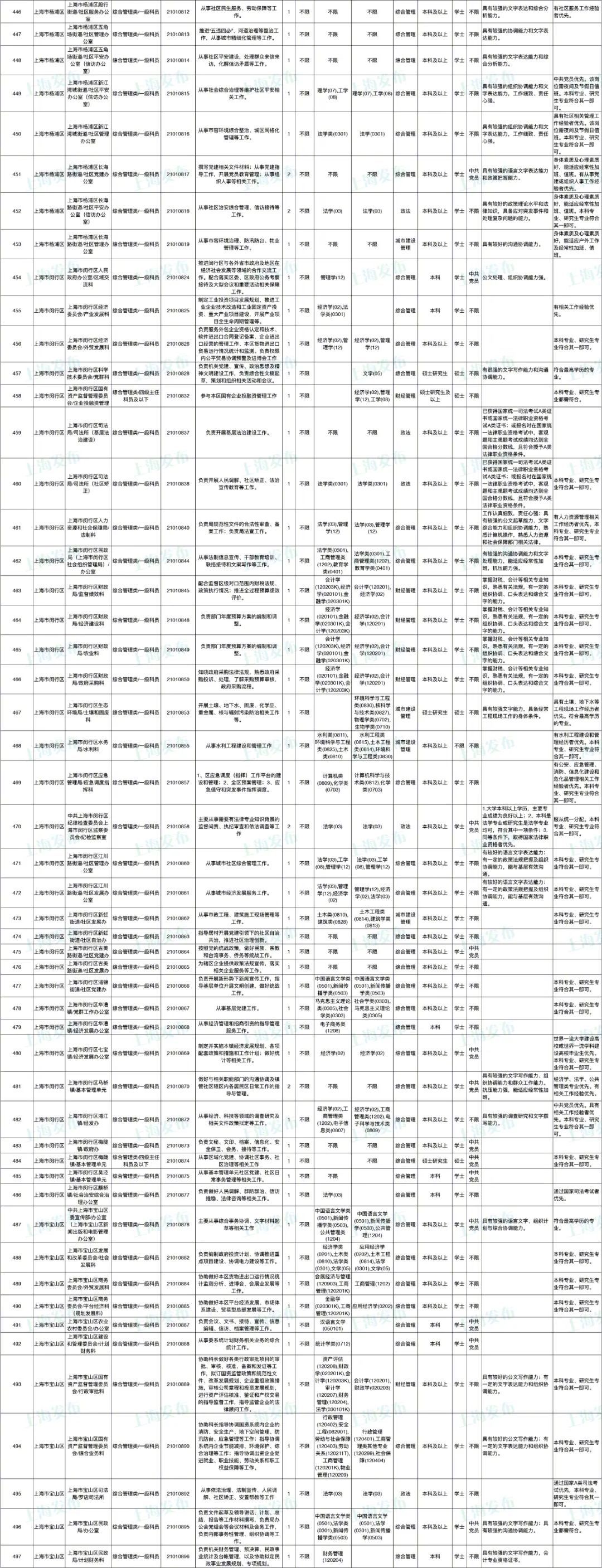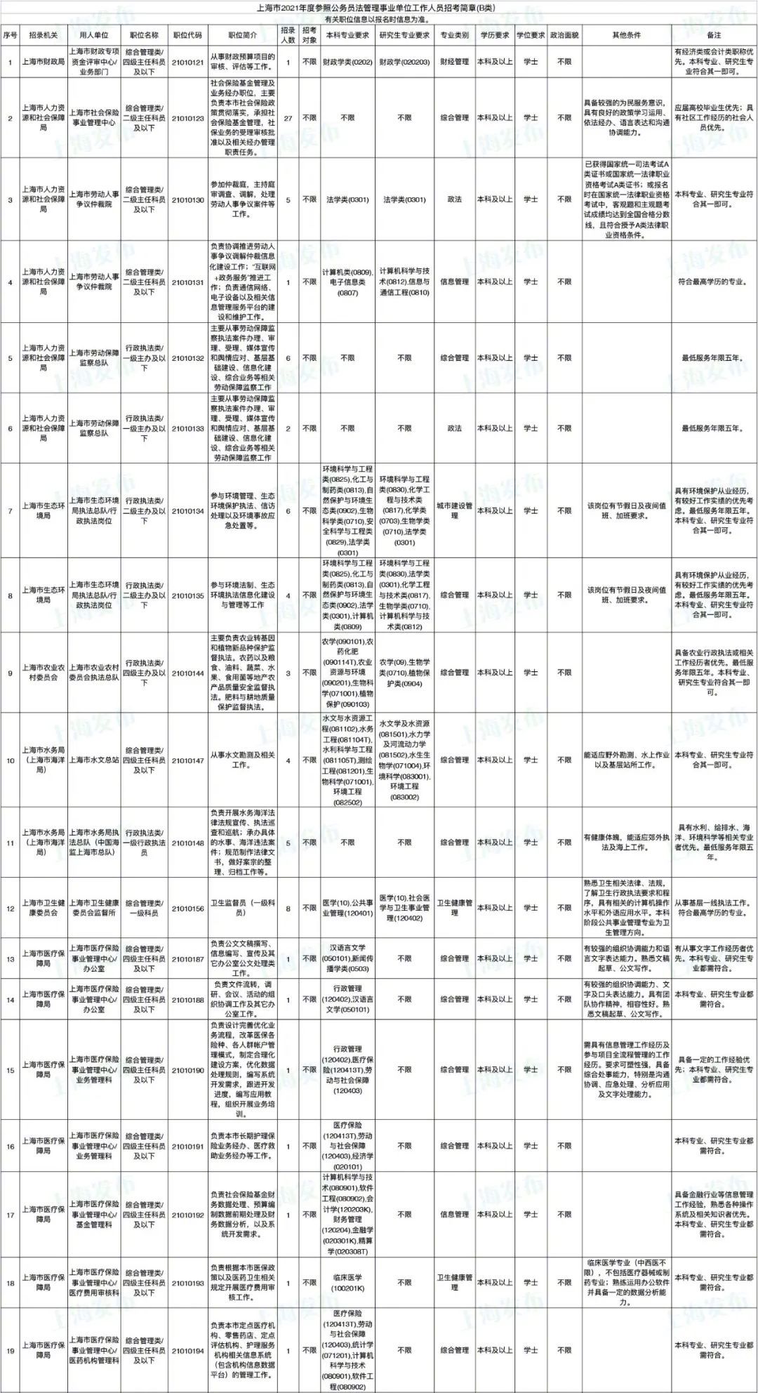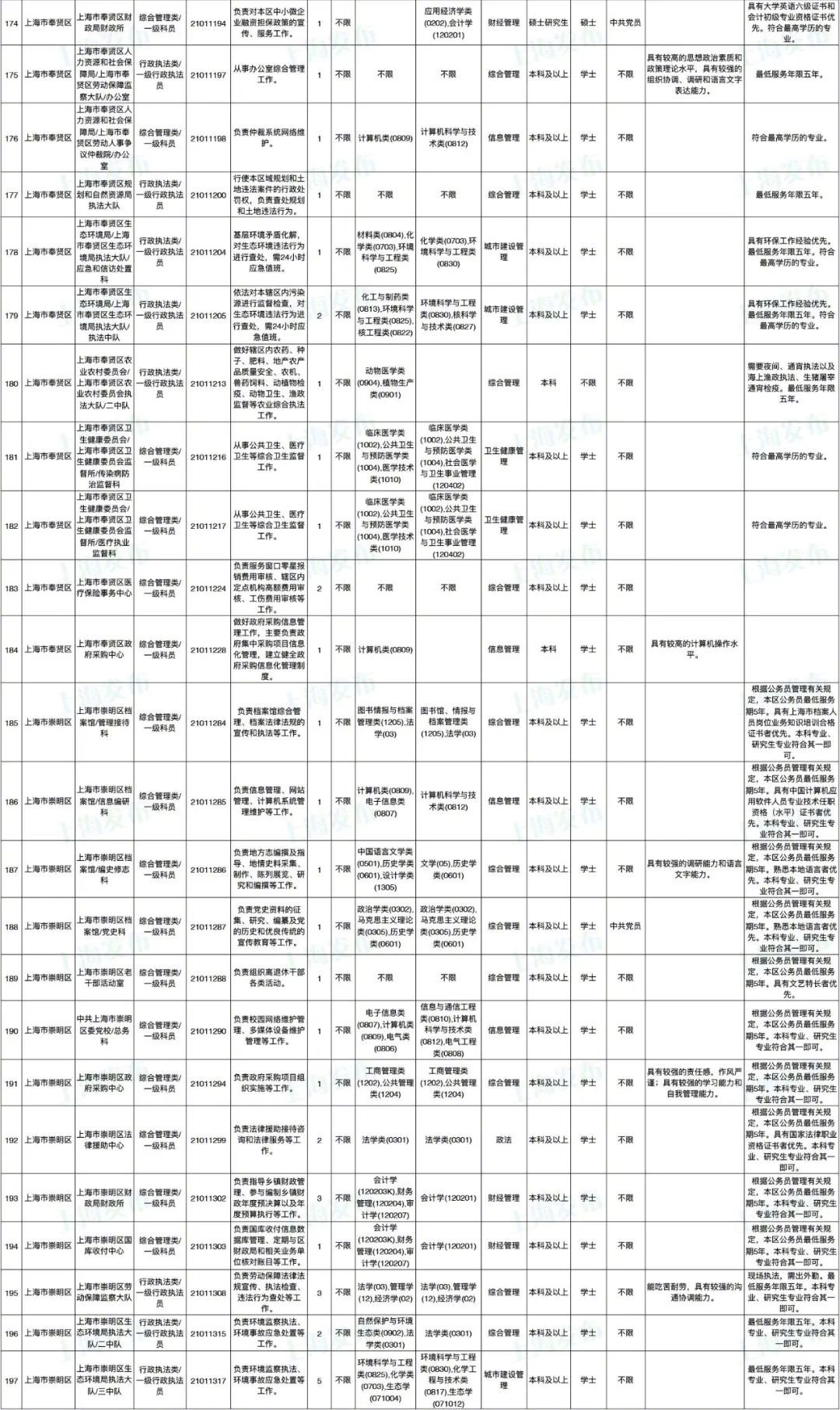 2021年上海市公务员招考职位表最新发布!这次全市有1468个岗位,招2896人。快来看看有没有合适你的职位!招录职位信息摘要请见下文,完整招录要求请点击“我要下载”下载表格查看。