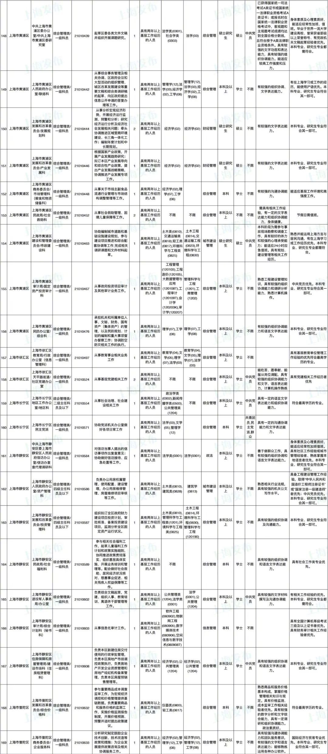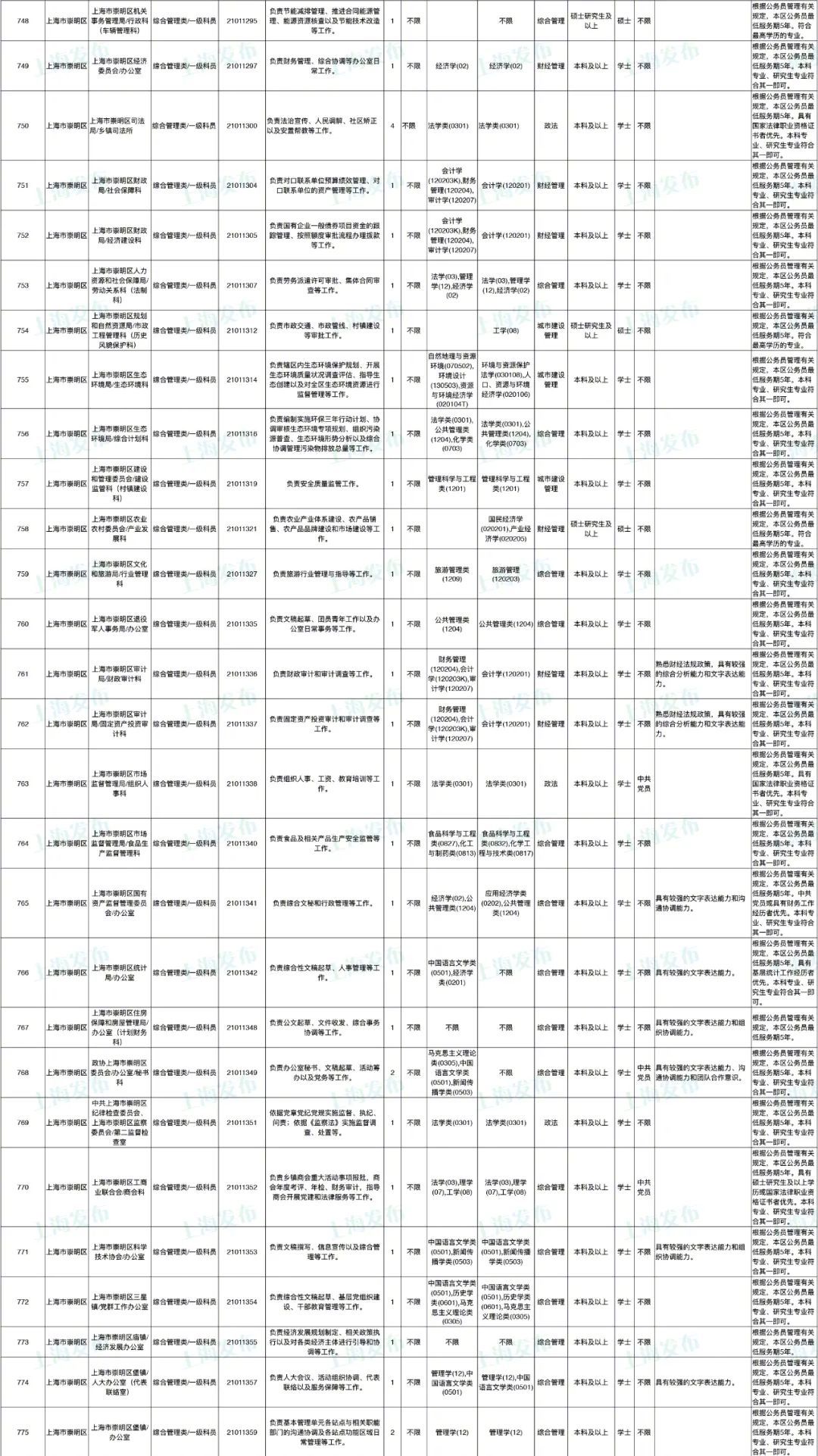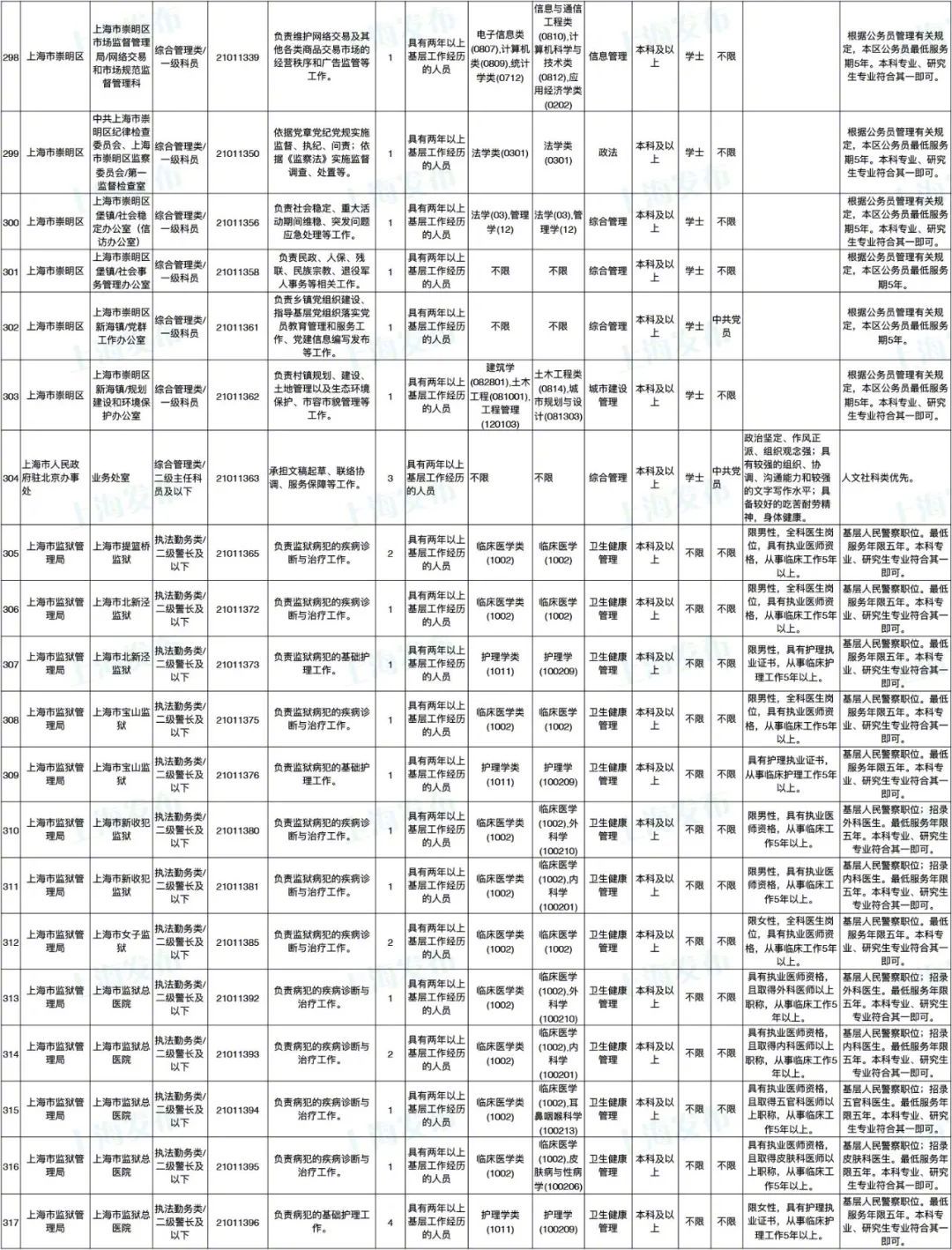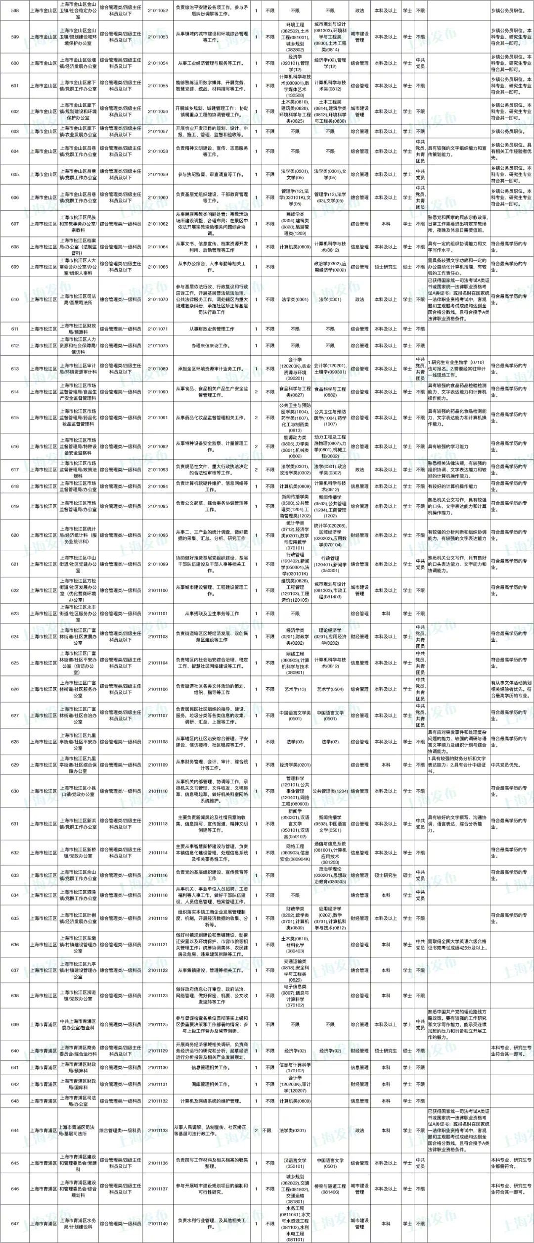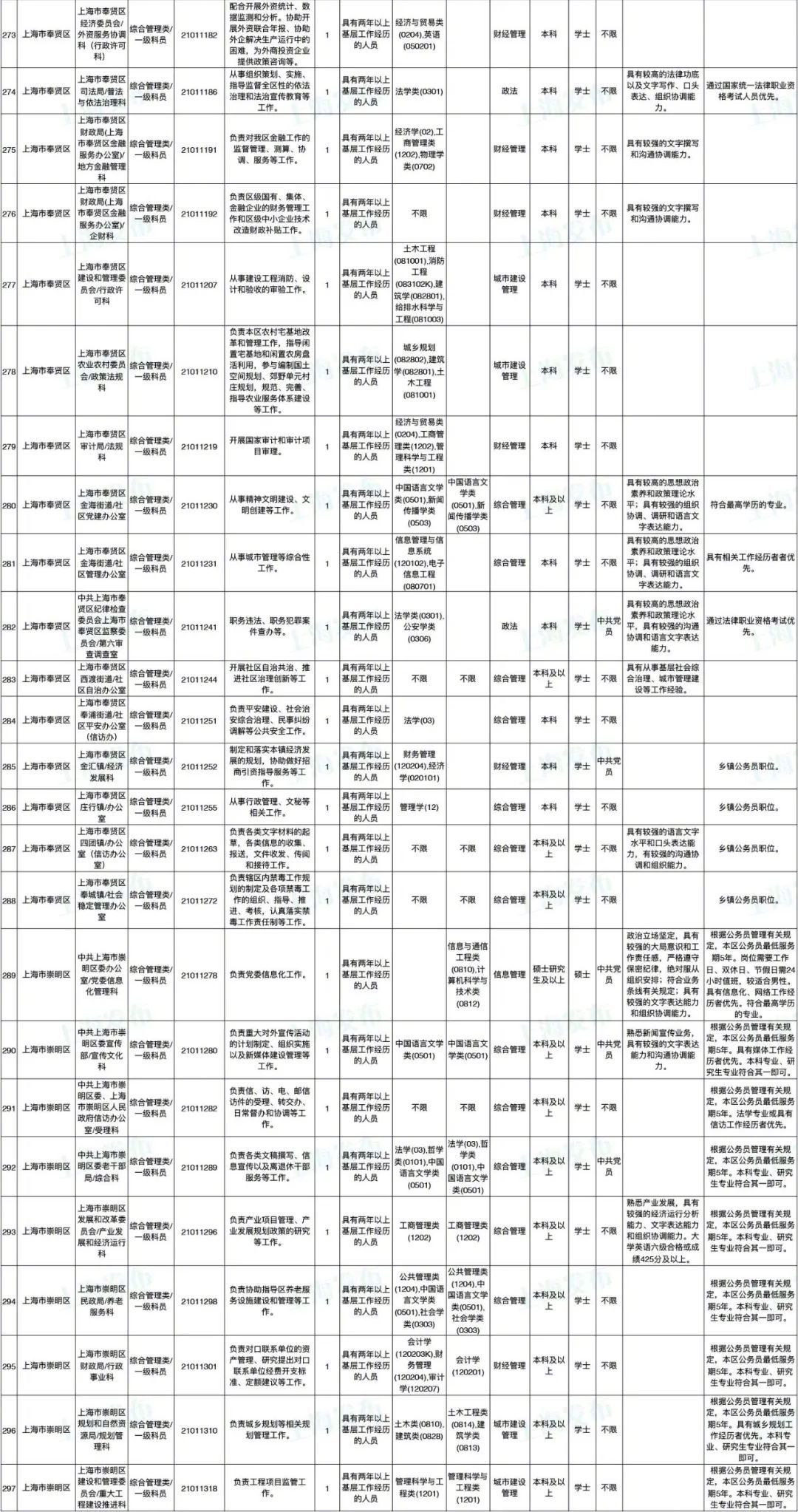 2021年上海市公务员招考职位表最新发布!这次全市有1468个岗位,招2896人。快来看看有没有合适你的职位!招录职位信息摘要请见下文,完整招录要求请点击“我要下载”下载表格查看。