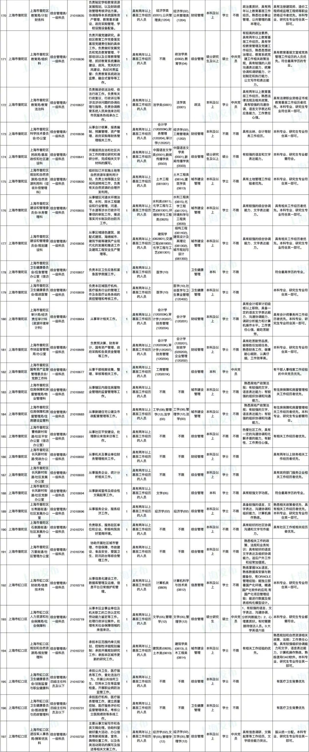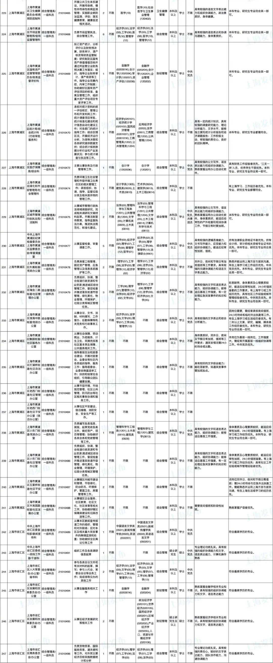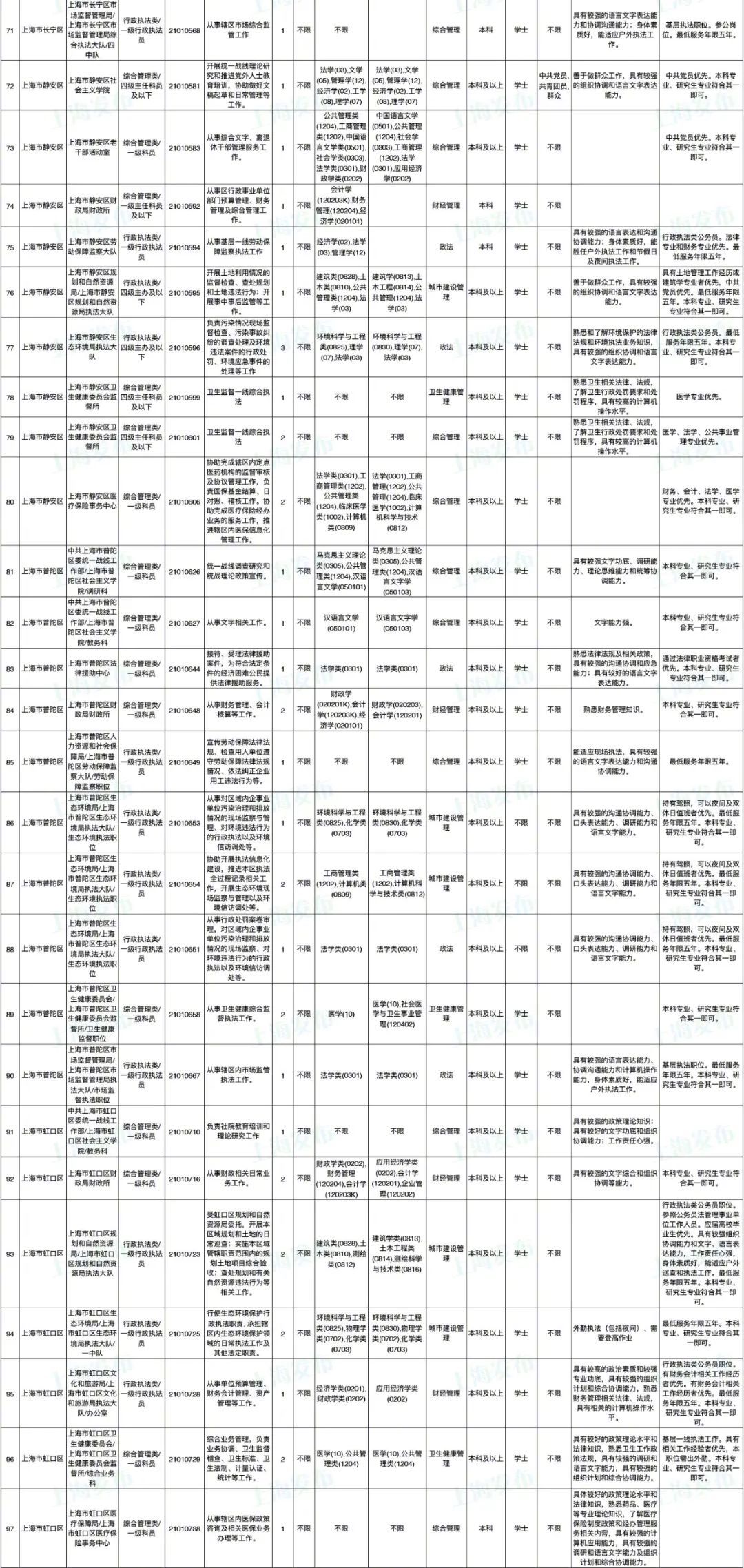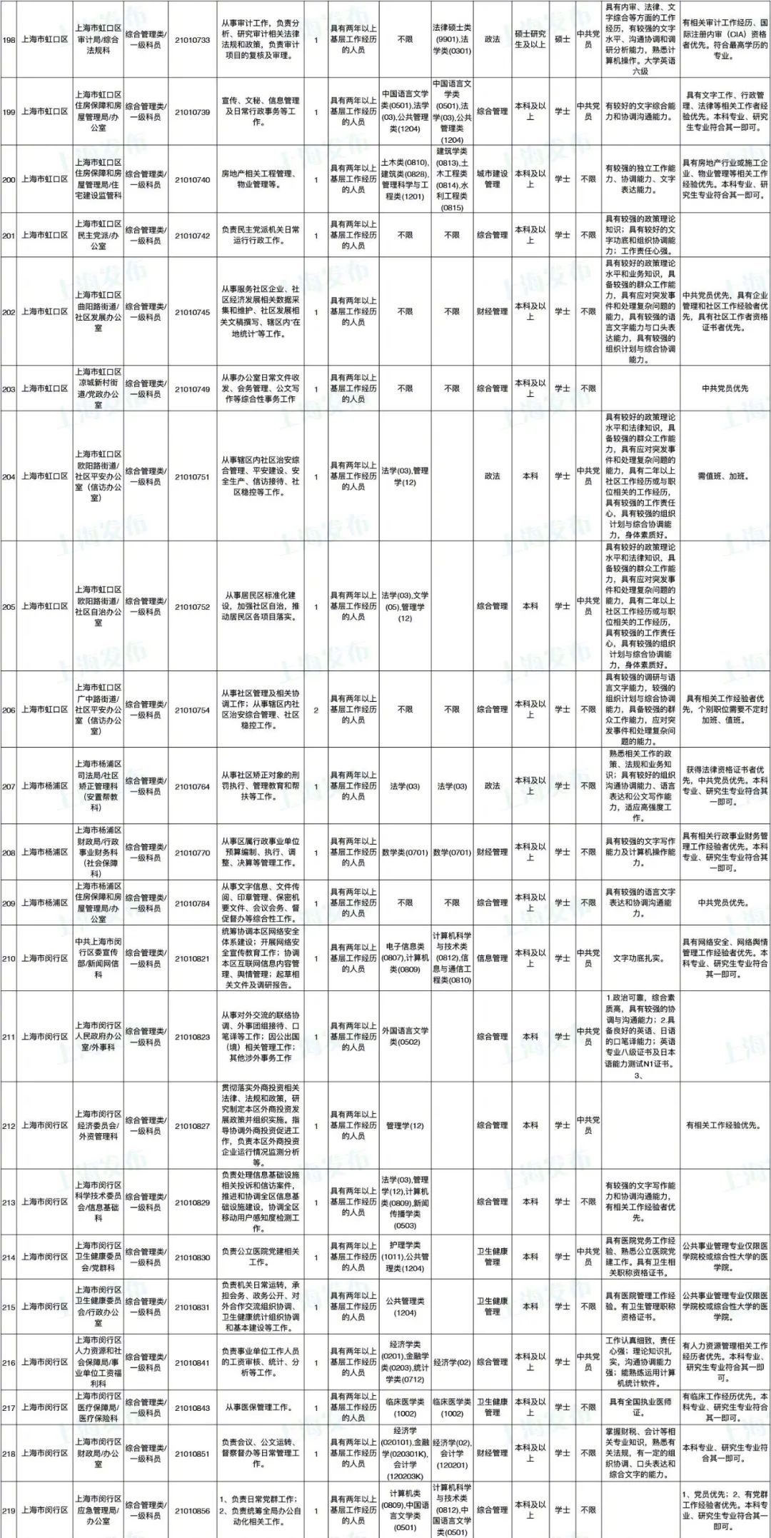 2021年上海市公务员招考职位表最新发布!这次全市有1468个岗位,招2896人。快来看看有没有合适你的职位!招录职位信息摘要请见下文,完整招录要求请点击“我要下载”下载表格查看。