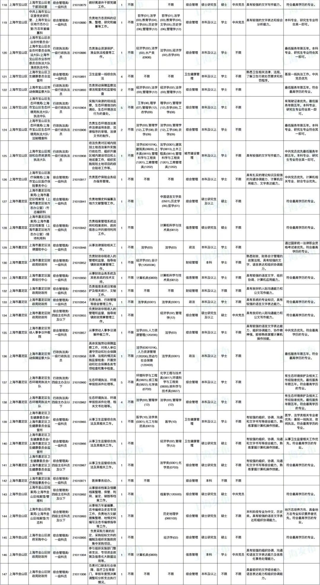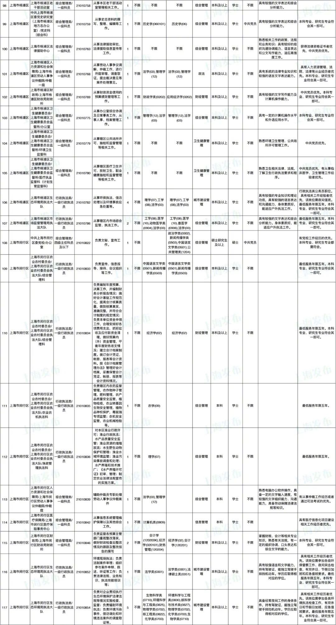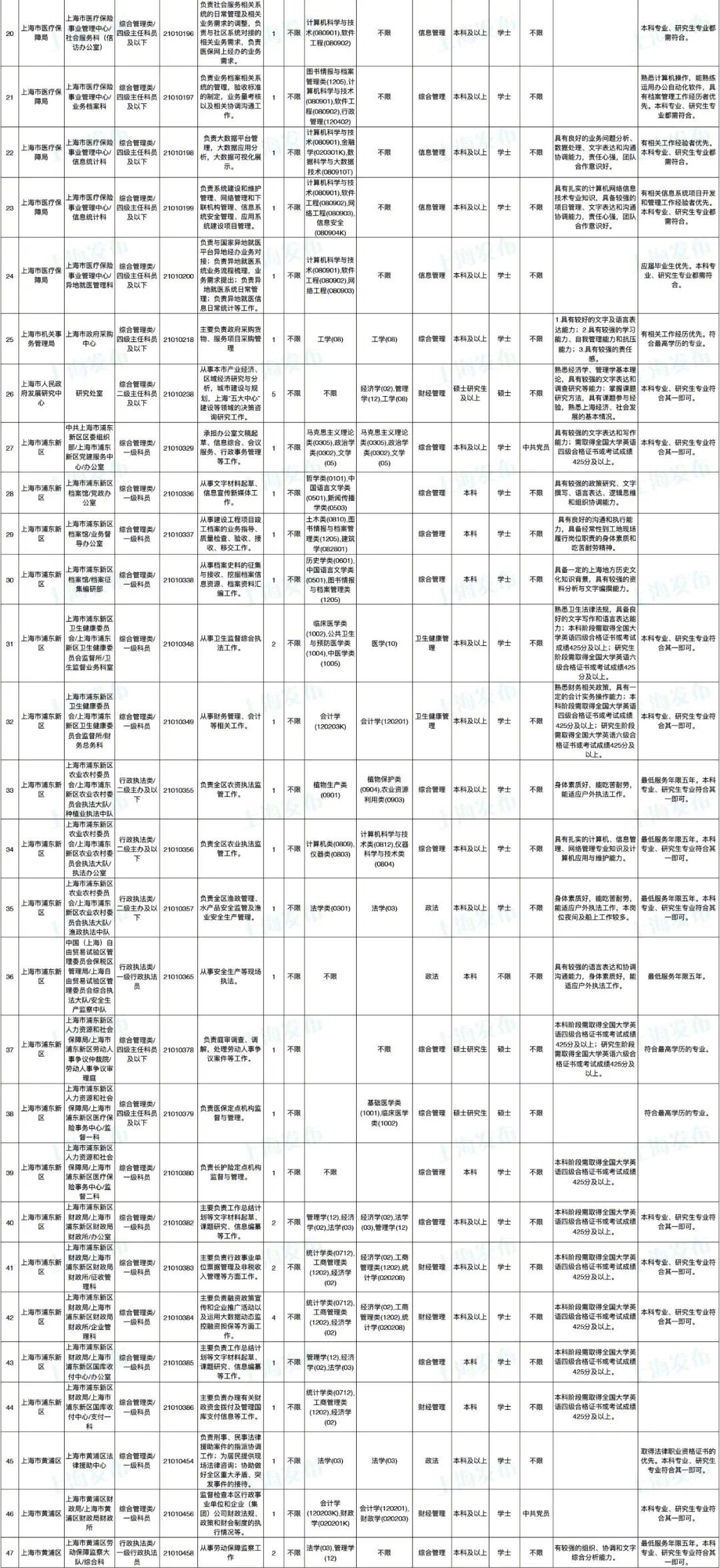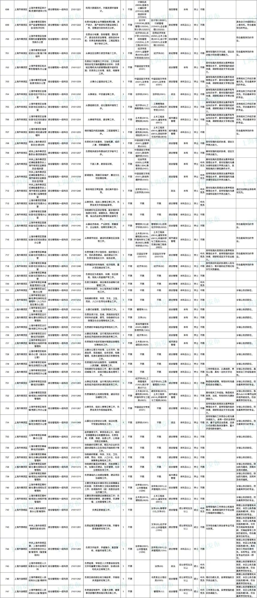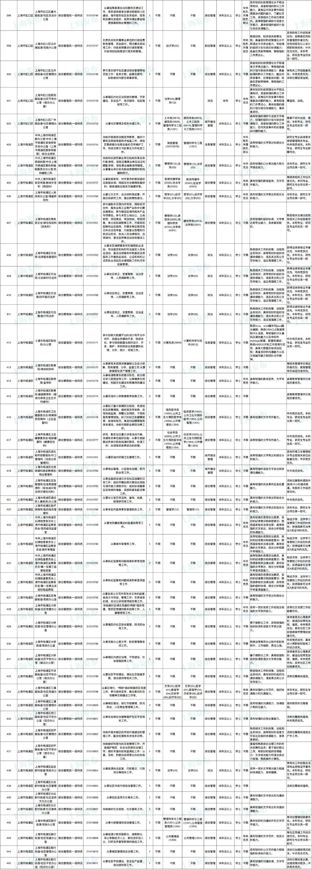 2021年上海市公务员招考职位表最新发布!这次全市有1468个岗位,招2896人。快来看看有没有合适你的职位!招录职位信息摘要请见下文,完整招录要求请点击“我要下载”下载表格查看。
