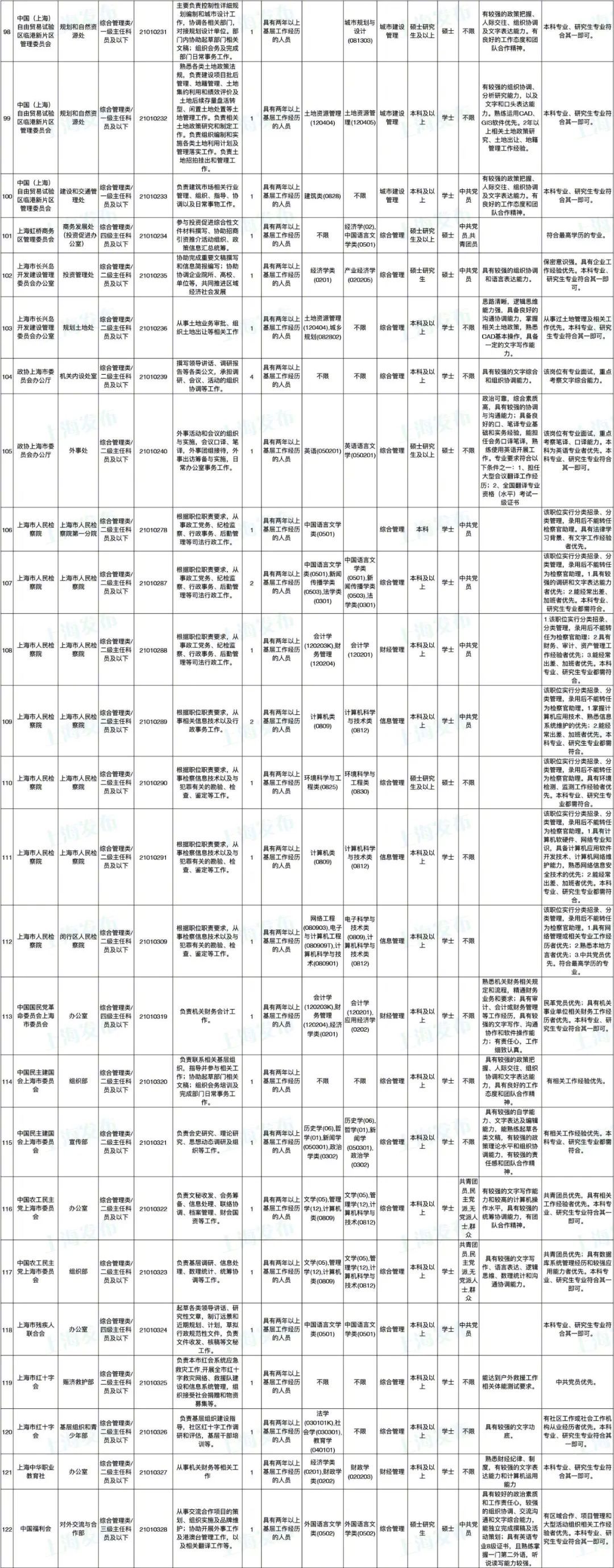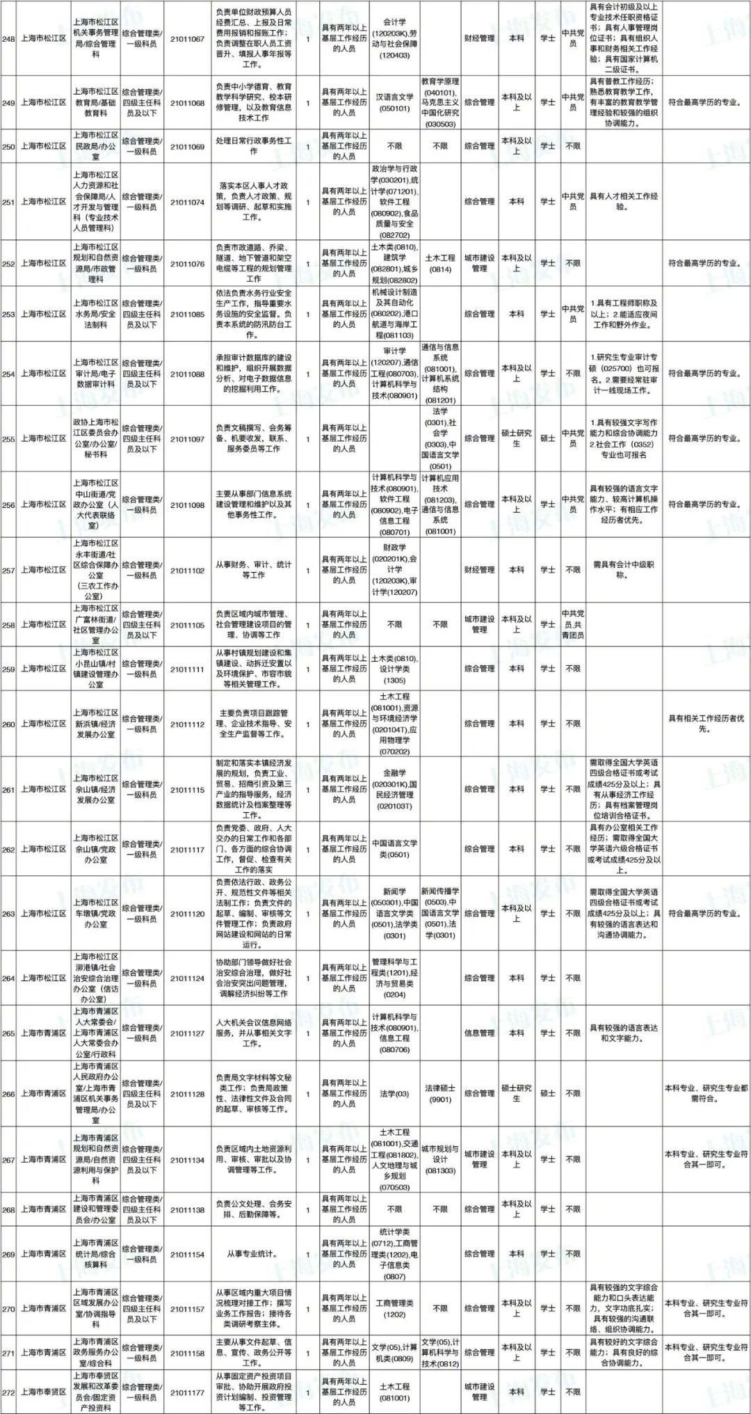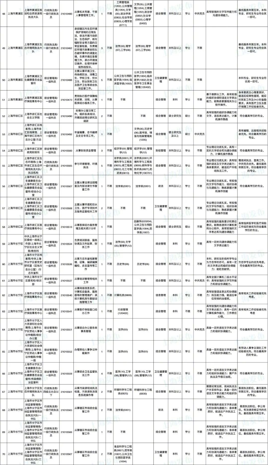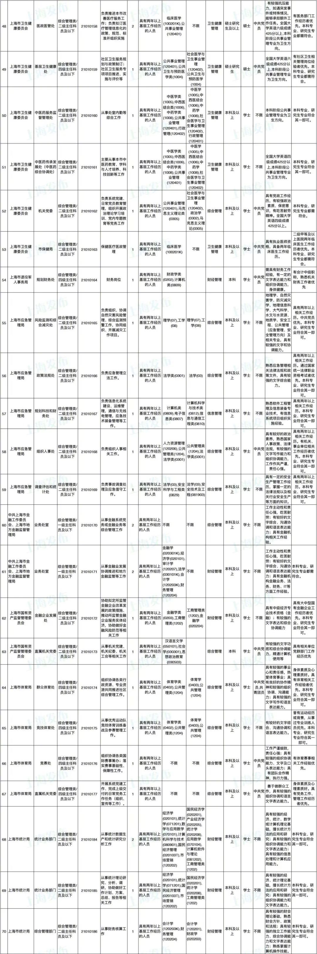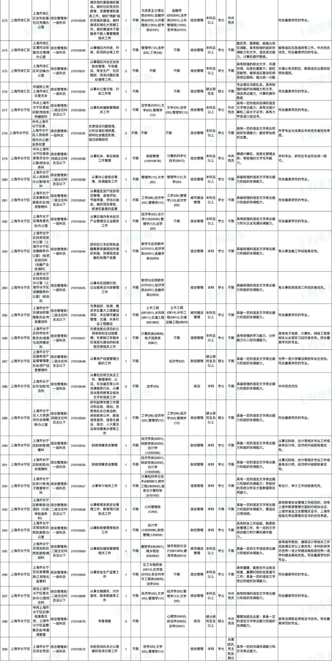 2021年上海市公务员招考职位表最新发布!这次全市有1468个岗位,招2896人。快来看看有没有合适你的职位!招录职位信息摘要请见下文,完整招录要求请点击“我要下载”下载表格查看。