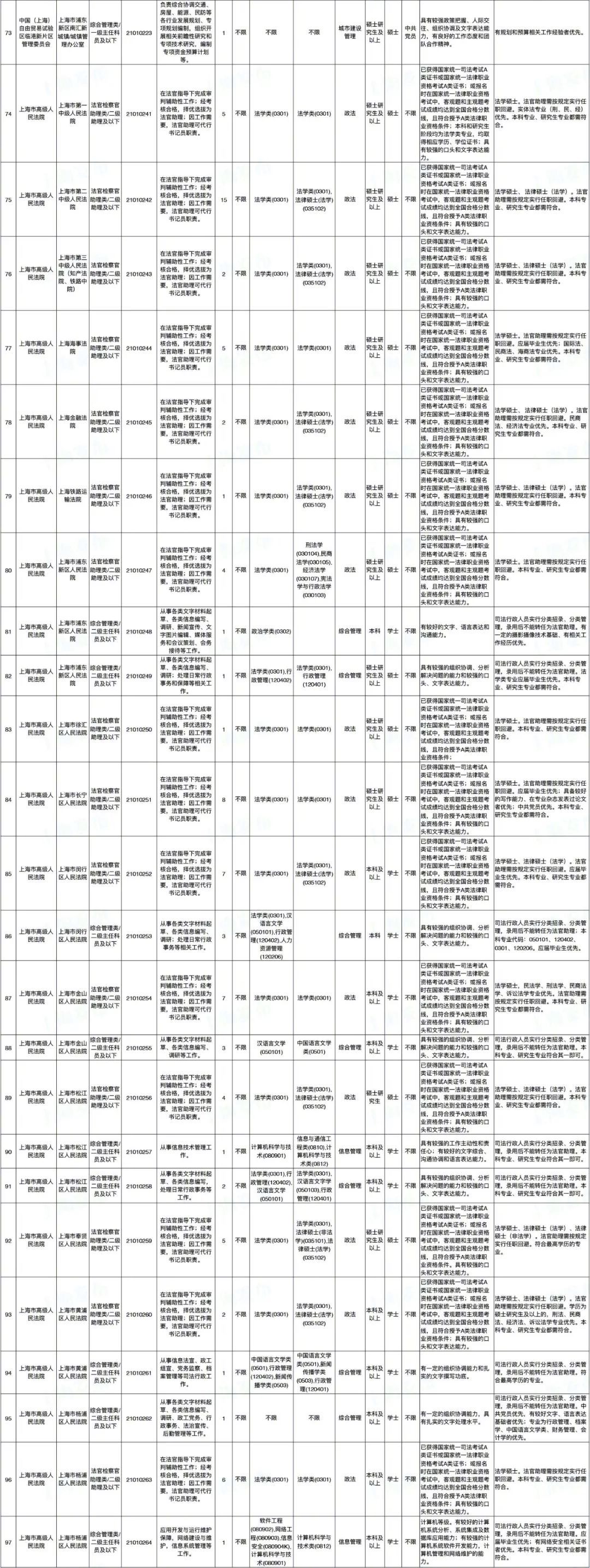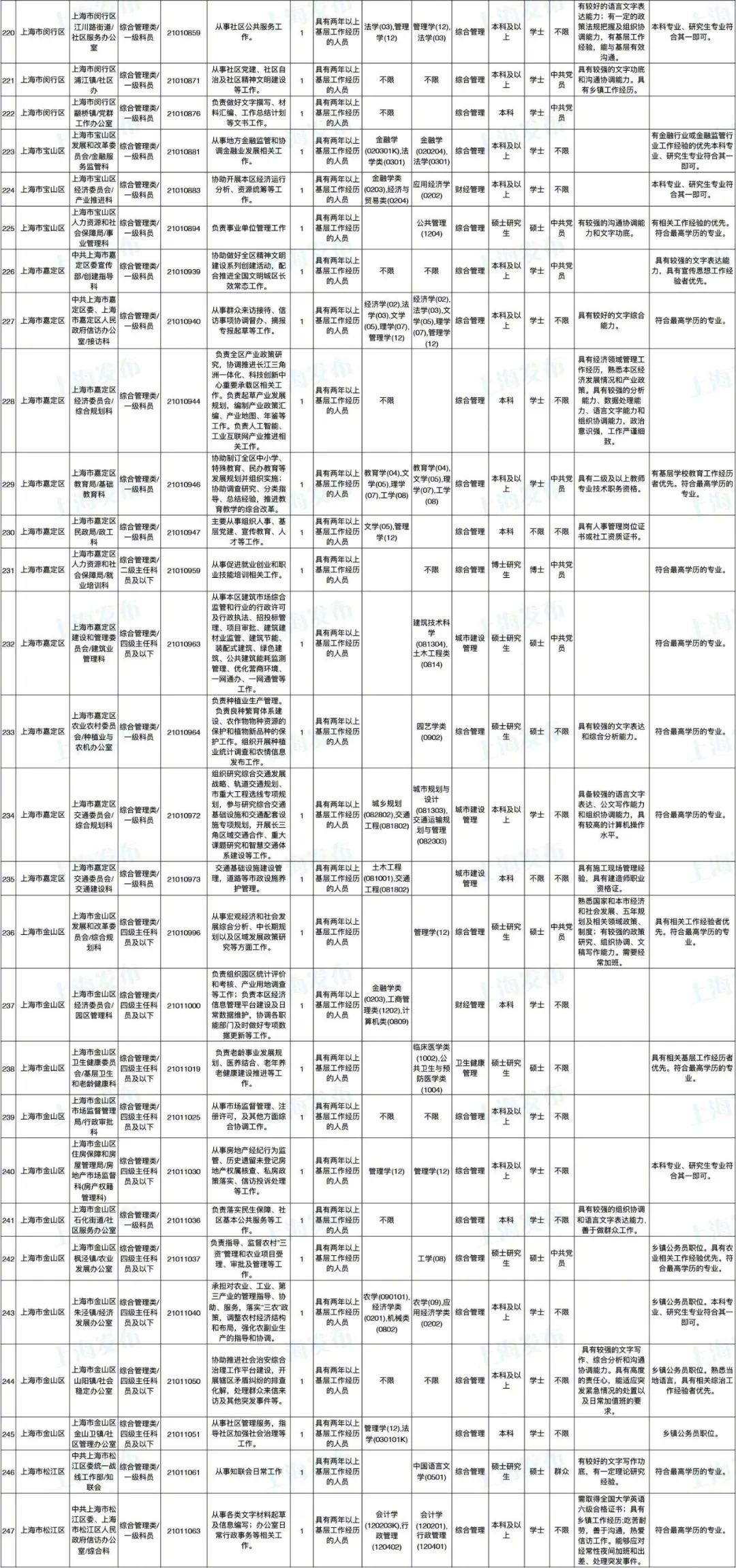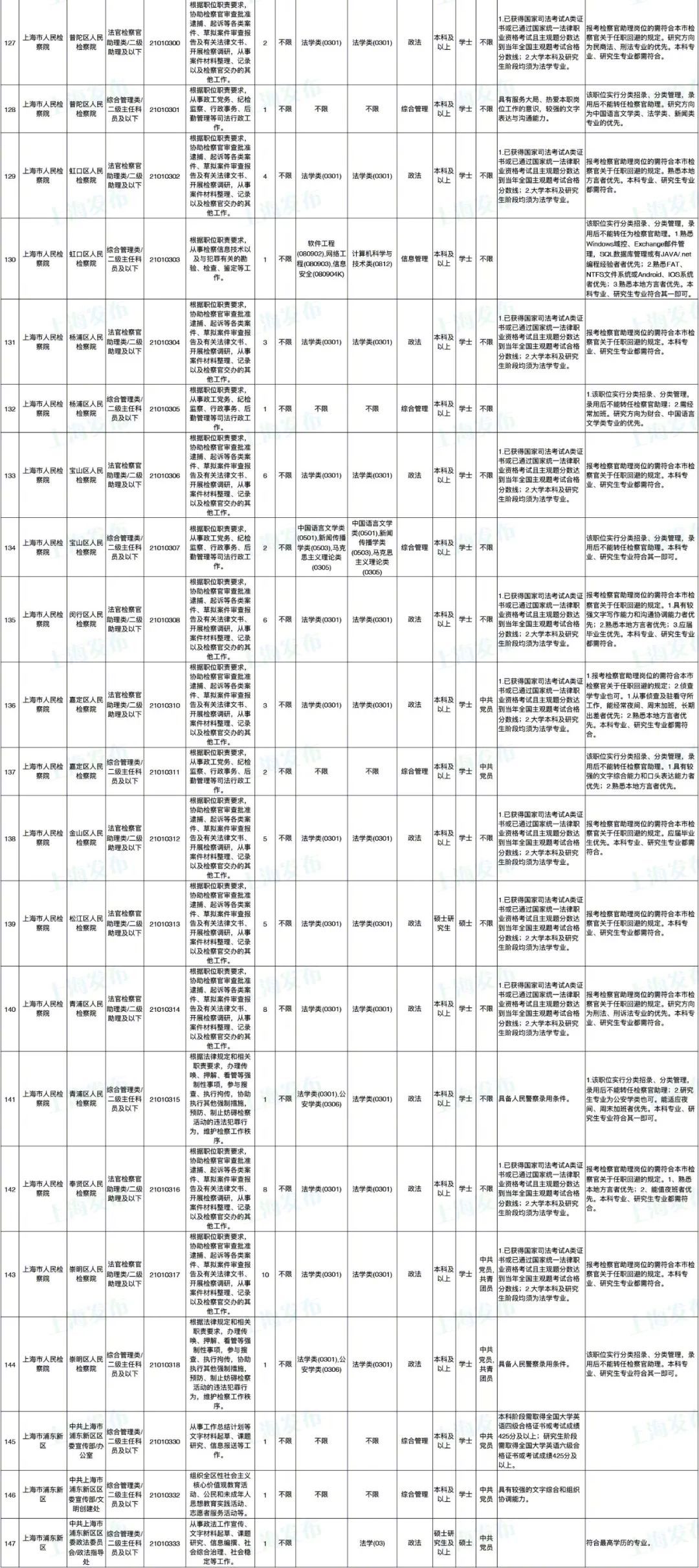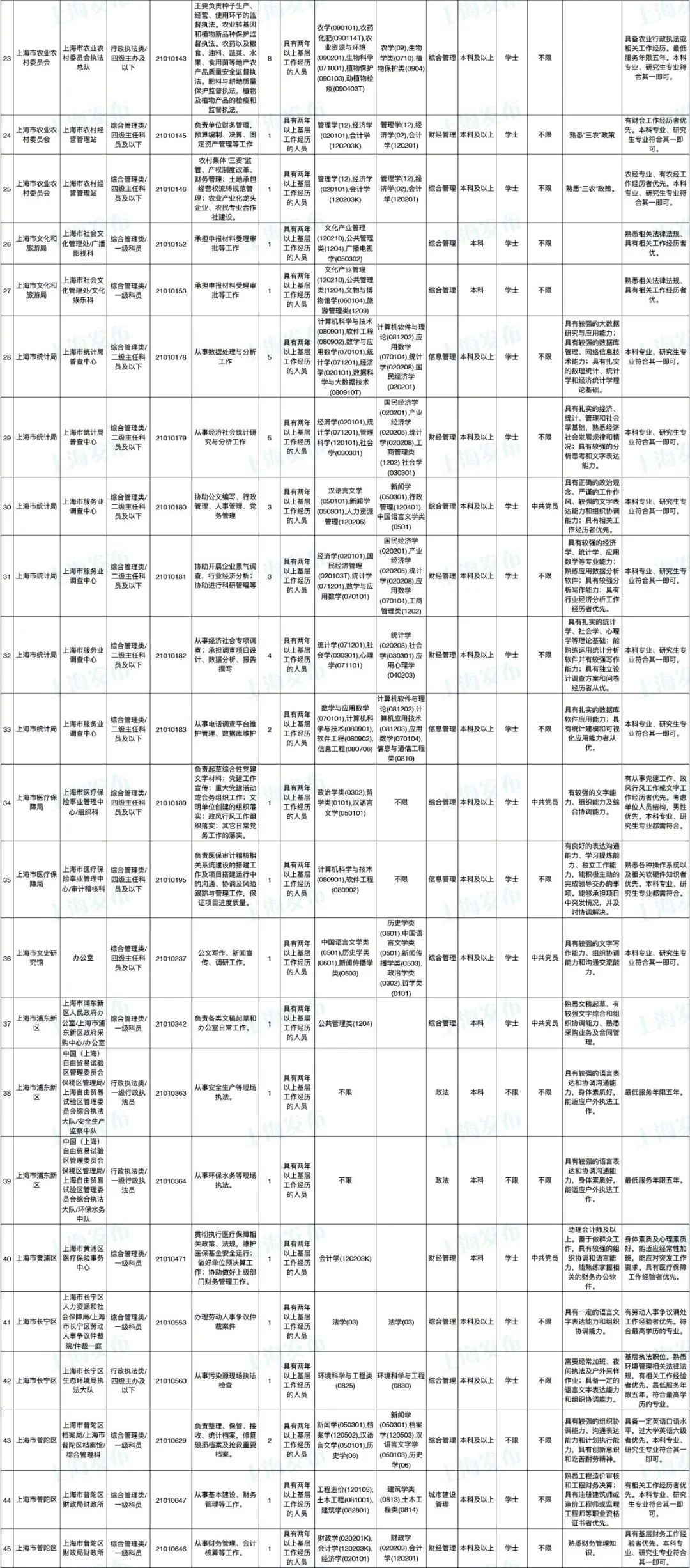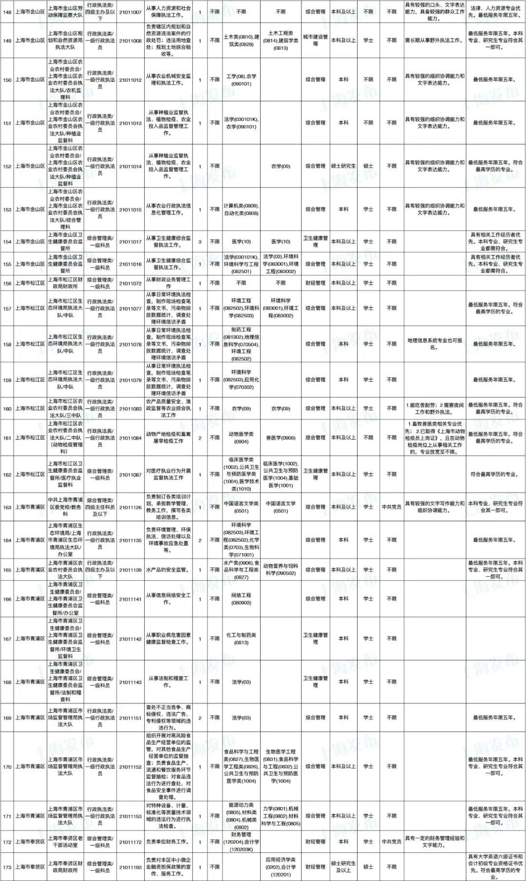 2021年上海市公务员招考职位表最新发布!这次全市有1468个岗位,招2896人。快来看看有没有合适你的职位!招录职位信息摘要请见下文,完整招录要求请点击“我要下载”下载表格查看。