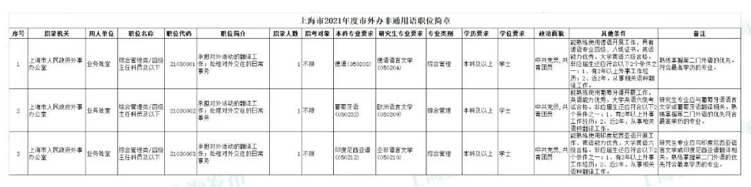 市外办非通用语职位