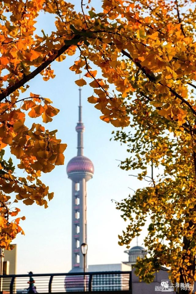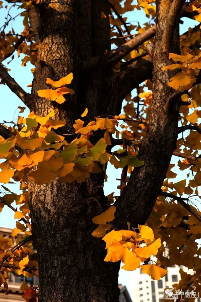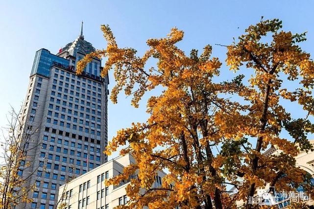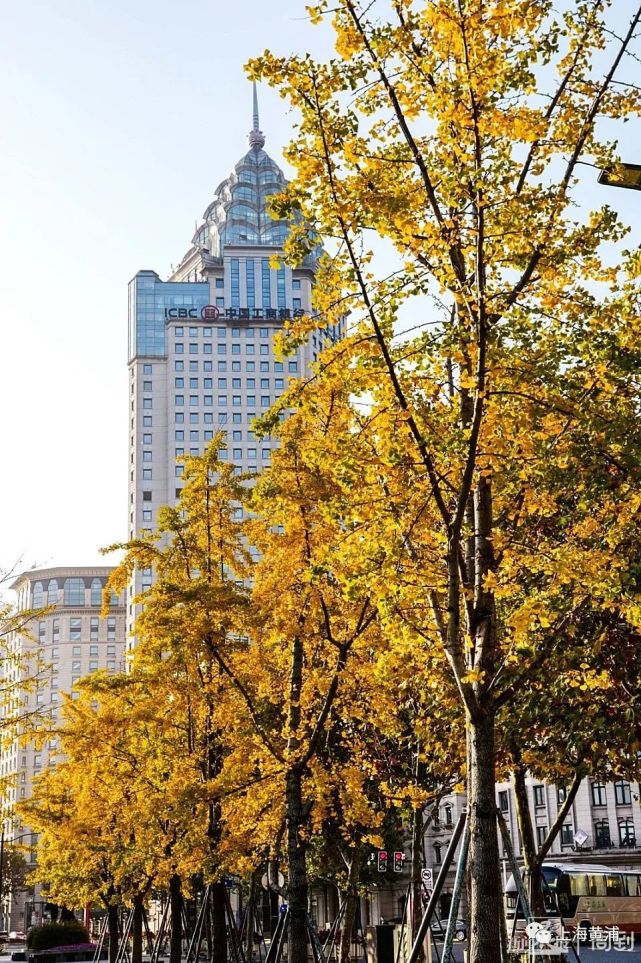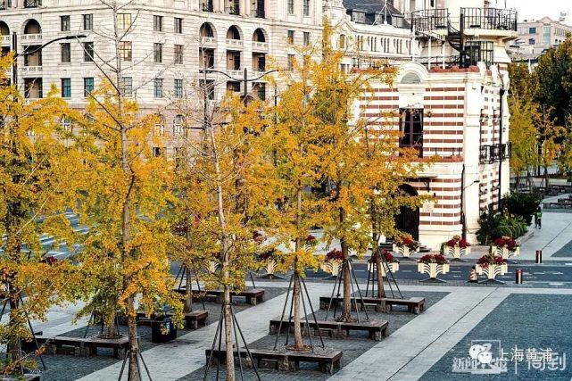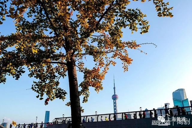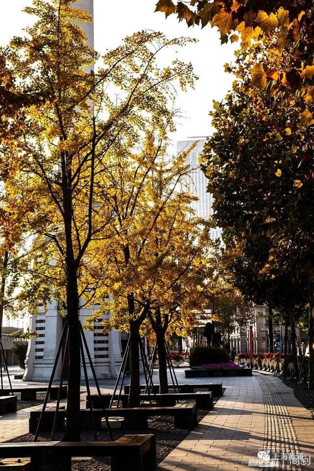 又到深秋时,外滩景观道靠近金陵东路轮渡站一排排银杏率先变黄了。