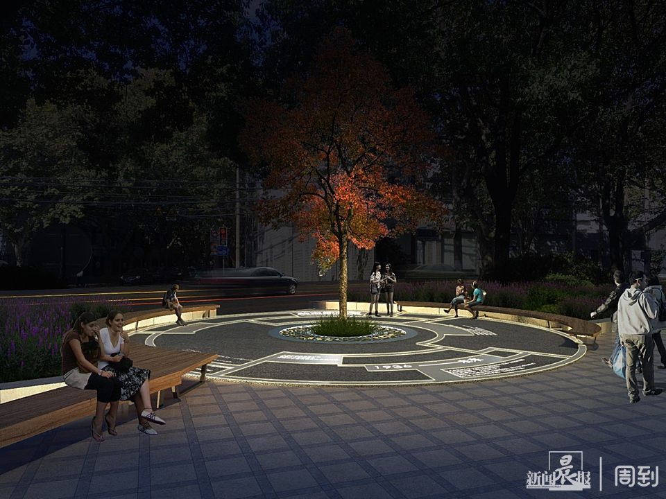 在复兴中路茂名南路街角,将会打造一个以“复兴路年轮”为主题的街边游园,结合所属区域的历史沿革等文化信息,以景观文化地刻为点缀,传达道路引导等信息。