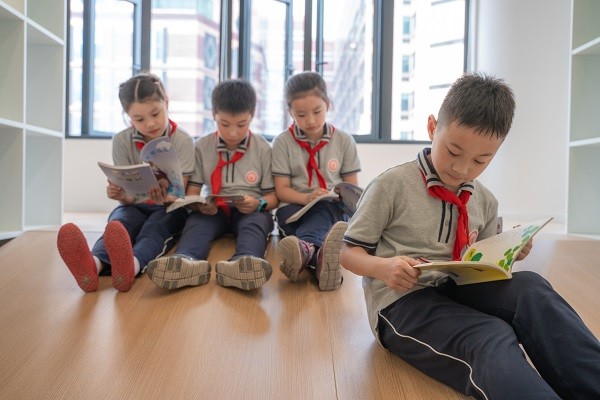 图说:孩子们在图书馆里沉浸书香