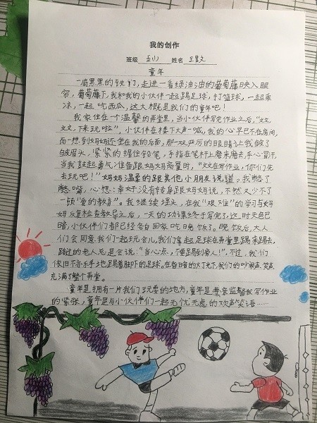 图说:孩子们用画笔和文字记录下自己的童年趣事