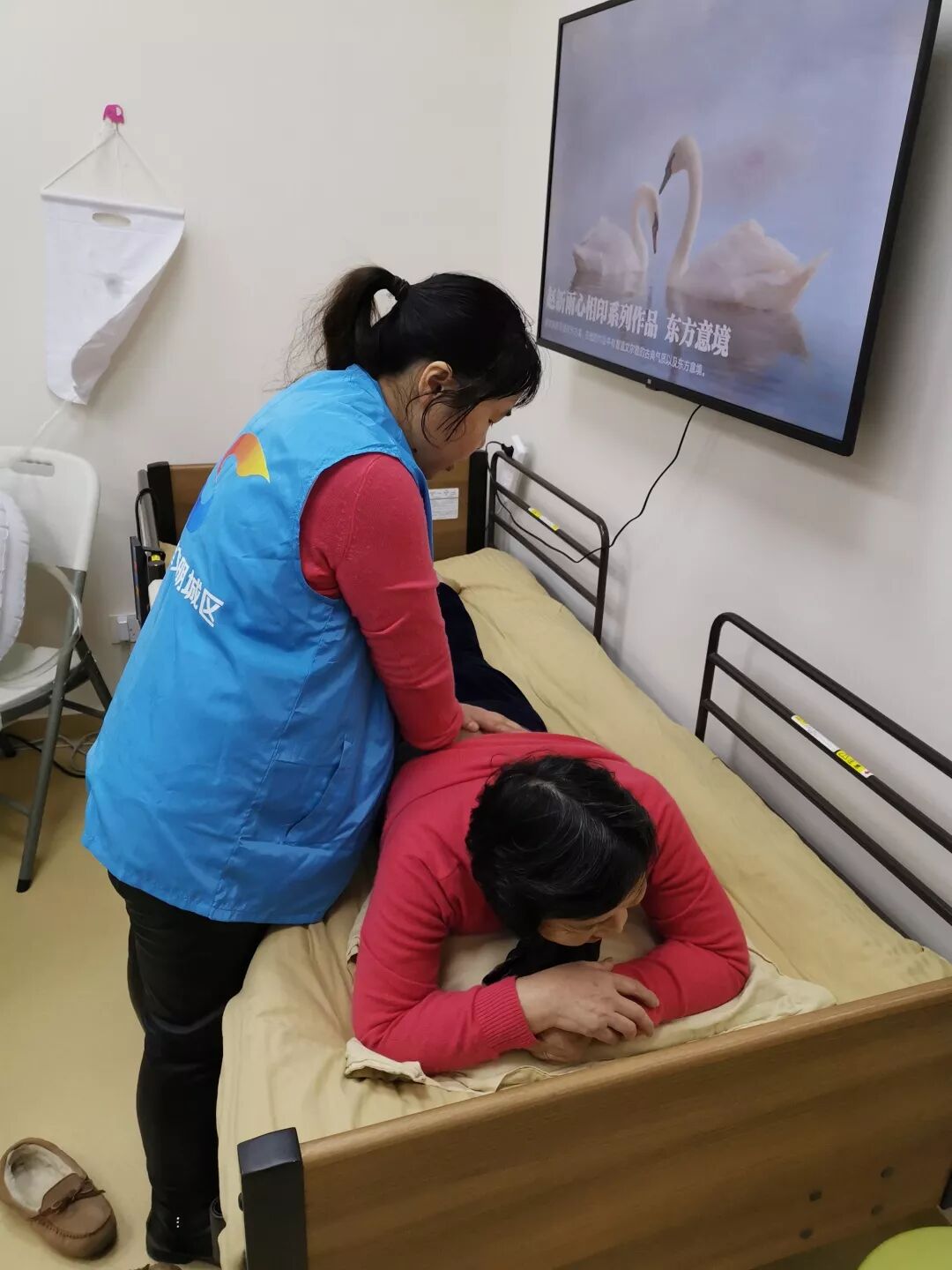 随着家门口照护站的开业,在综合为老服务中心内设置的“双家支持中心”也开始为居民们提供服务。“双家支持中心”既是家庭养老床位宣传推广以及科学养老理念普及的平台,又是居家养老服务应急响应的具体部门。“双家支持中心”内设洽谈室、场景教学室、双家后台服务室、培训室等,通过适老化家居改造体验教学、辅具用具租赁体验等形式,让居民逐步接受家庭照护床位,不断提升家庭照料能力。